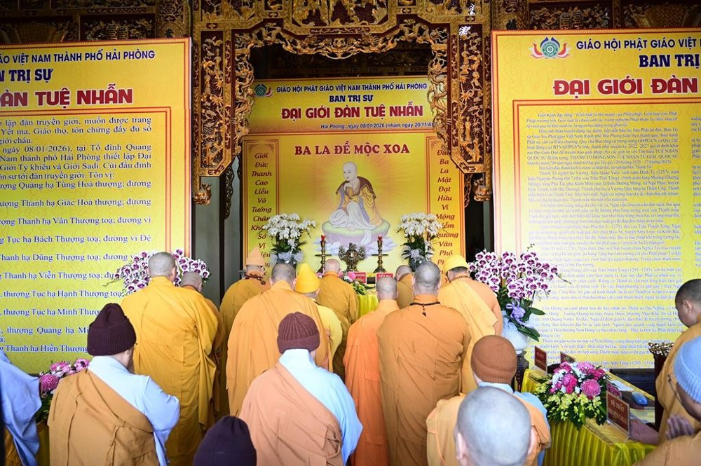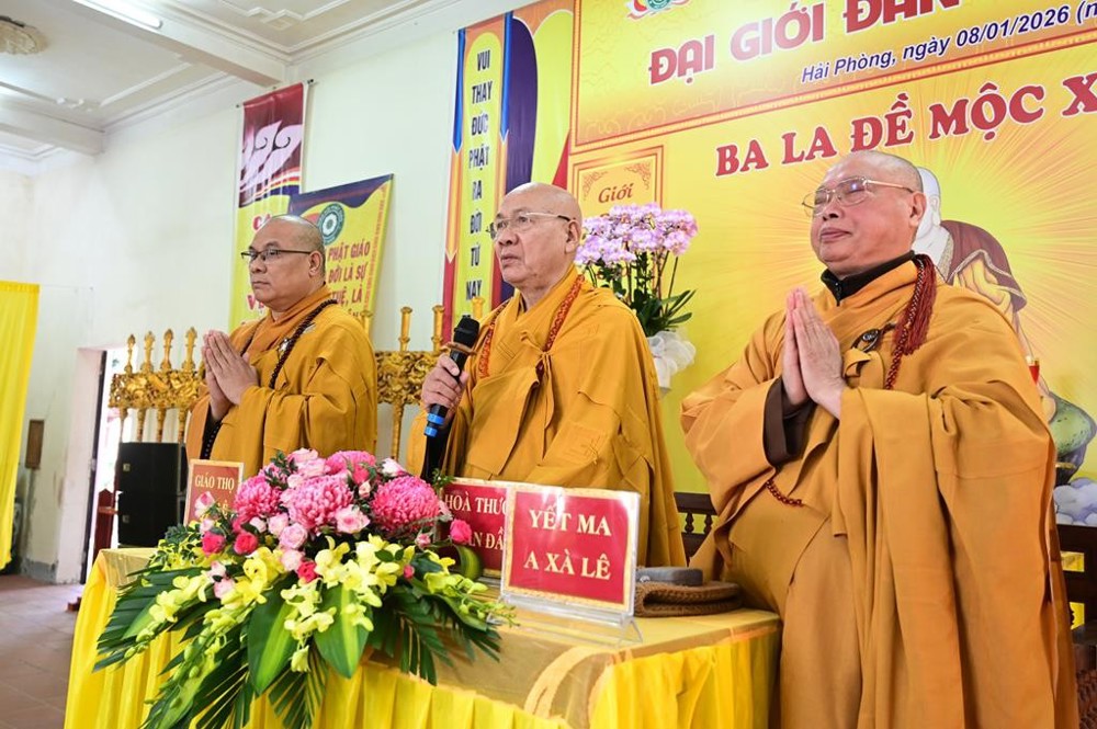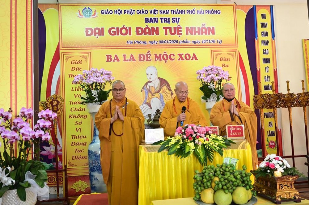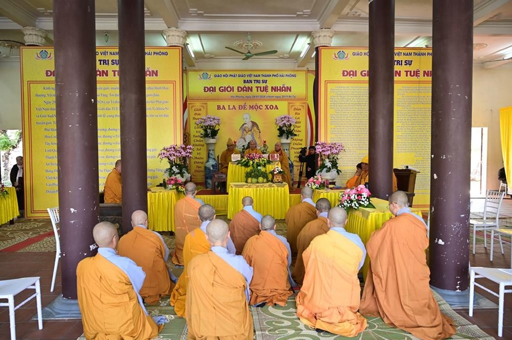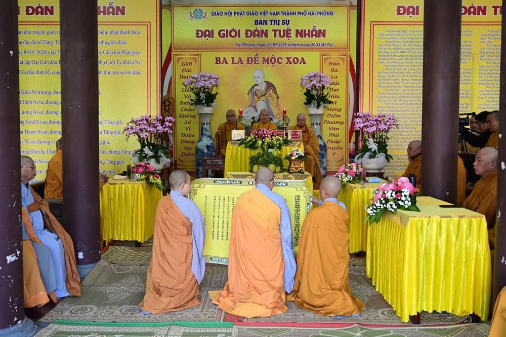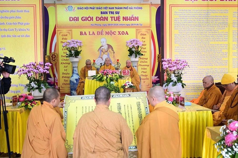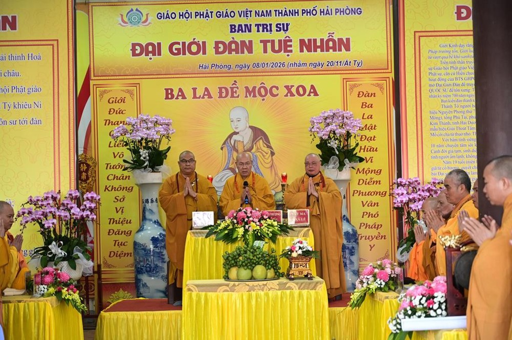 PSO - Ngày 08/01/2026 (nhằm ngày 20/11 năm Ất Tỵ), tại Tổ đình Quang Khánh (chùa Muống), Ban trị sự GHPGVN thành phố Hải Phòng đã trang nghiêm tổ chức Đại giới đàn Tuệ Nhẫn Phật lịch 2570, hai Hội đồng Giới sư đã đăng đàn truyền giới cho tổng số 37 Giới tử.