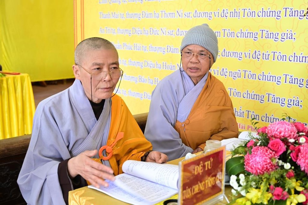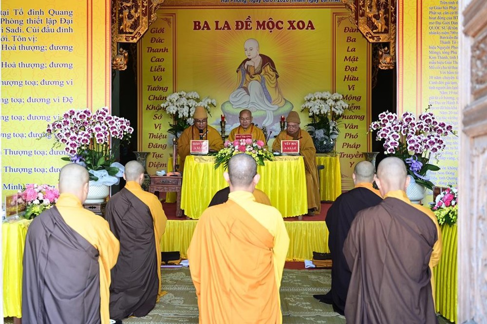 Chư tôn đức Hội đồng Giới sư Tăng đã cung thỉnh Hòa thượng Thích Quảng Tùng, Phó Chủ tịch HĐTS, Trưởng ban Ban từ thiện – xã hội, Trưởng BTS GHPGVN thành phố Hải Phòng ngôi đàn đầu Hòa thượng, trưởng Ban tổ chức đại Giới đàn; Hòa thượng Thích Thanh Giác, viện chủ Tổ đình Long Hoa, ngôi Yết Ma A Xà Lê; Hòa thượng Thích Thanh Vân, Ủy viên HĐTS GHPGVN, phó trưởng ban Thường trực BTS GHPGVN thành phố Hải Phòng, ngôi Giáo thọ A Xà Lê; cùng quý Tôn chứng sư bao gồm 7 vị: TT. Thích Tục Bách, TT. Thích Thanh Dũng, TT. Thích Tục Hạnh, TT. Thích Thanh Viễn, TT. Thích Quảng Minh, TT. Thích Tục Minh, TT. Thích Thanh Hiền.