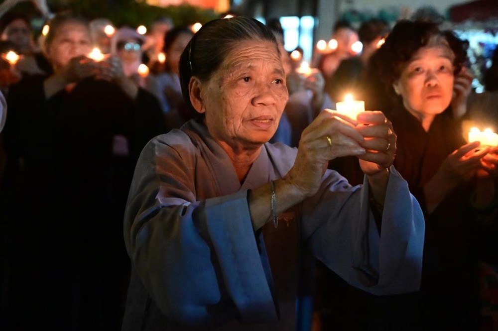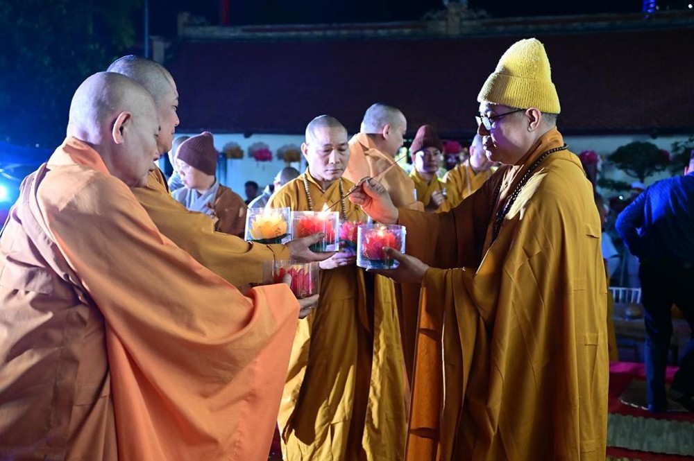Thời khắc linh thiêng nhất của buổi lễ diễn ra khi chư Tôn đức cử hành nghi lễ niêm hương, bạch Phật cầu nguyện thế giới hòa bình, phong điều vũ thuận, quốc thái dân an. Tiếp đó, Hòa thượng Thích Thanh Vân đã đón nhận ánh sáng từ bi và trí tuệ từ bàn Phật, truyền đăng đến chư Tôn đức Tăng Ni và toàn thể đại chúng. Ánh sáng dần lan tỏa khắp khuôn viên chùa Hào Quang, những ngọn nến lung linh huyền ảo, nến truyền nến, tâm truyền tâm, làm cho buổi lễ càng thêm trang nghiêm, thanh tịnh, dâng lên cúng dường Bồ Tát Quán Thế Âm nhân ngày khánh đản của Ngài.