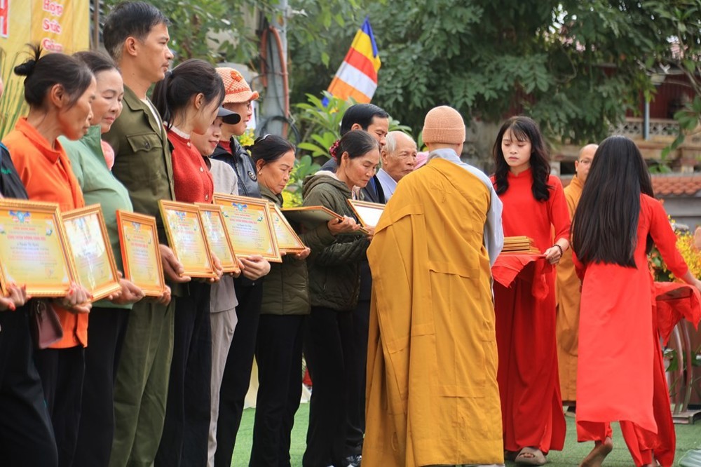 Dịp này, Sư cô Thích Tịnh Thanh đã trao bằng tuyên dương công đức đến các doanh nghiệp, nhà hảo tâm, mạnh thường quân và Phật tử đã phát tâm đóng góp xây dựng ngôi Tổ đường và đồng hành cùng các hoạt động Phật sự của chùa Quang Minh trong thời gian qua.