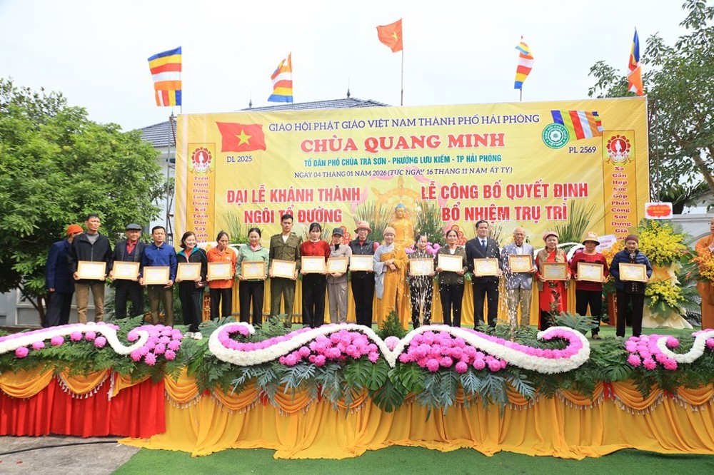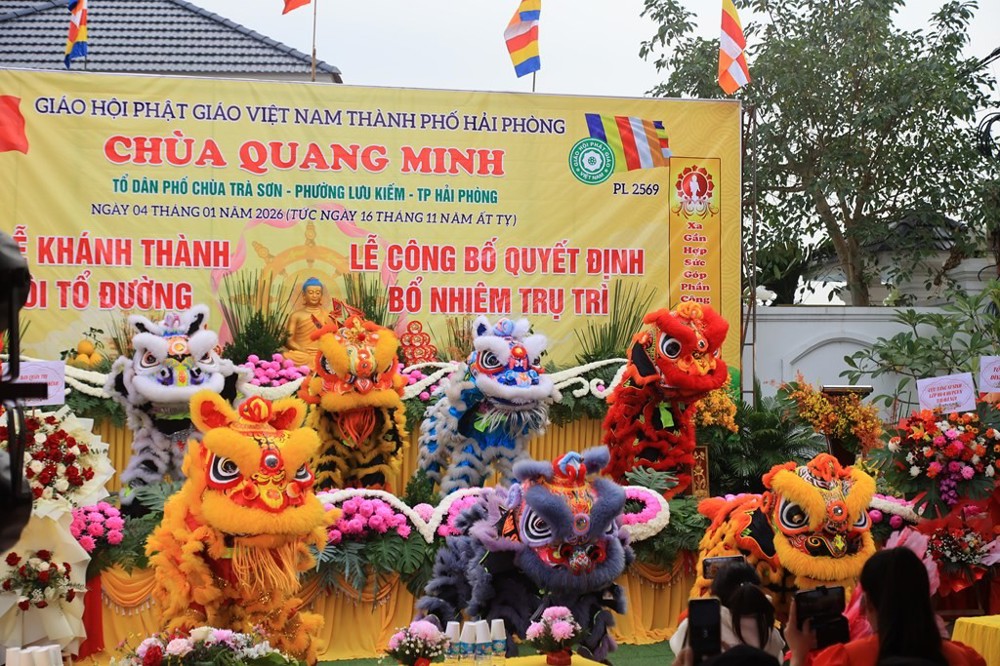 Sáng ngày 04/01/2026 (nhằm ngày 16/11 năm Ất Tỵ), tại chùa Quang Minh (Tổ dân phố chùa Trà Sơn, phường Lưu Kiếm, thành phố Hải Phòng) đã long trọng diễn ra Đại lễ bổ nhiệm trụ trì và cắt băng khánh thành ngôi Tổ đường chùa Quang Minh.