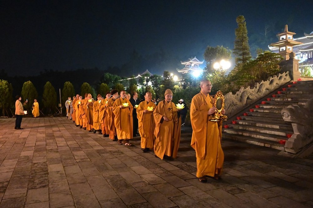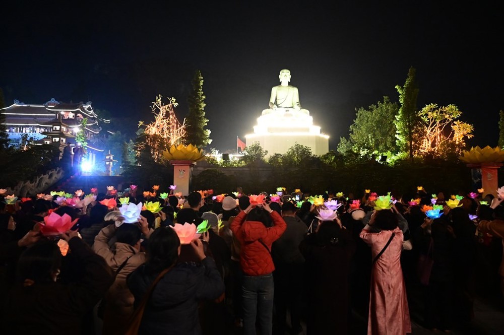 Buổi lễ khép lại bằng màn bắn pháo hoa trang trọng trước Đại Phật tượng Trần Nhân Tông, kính mừng ngày khánh đản Đức Phật A Di Đà, trong niềm hoan hỷ vô biên của Tăng Ni, Phật tử và nhân dân tham dự.