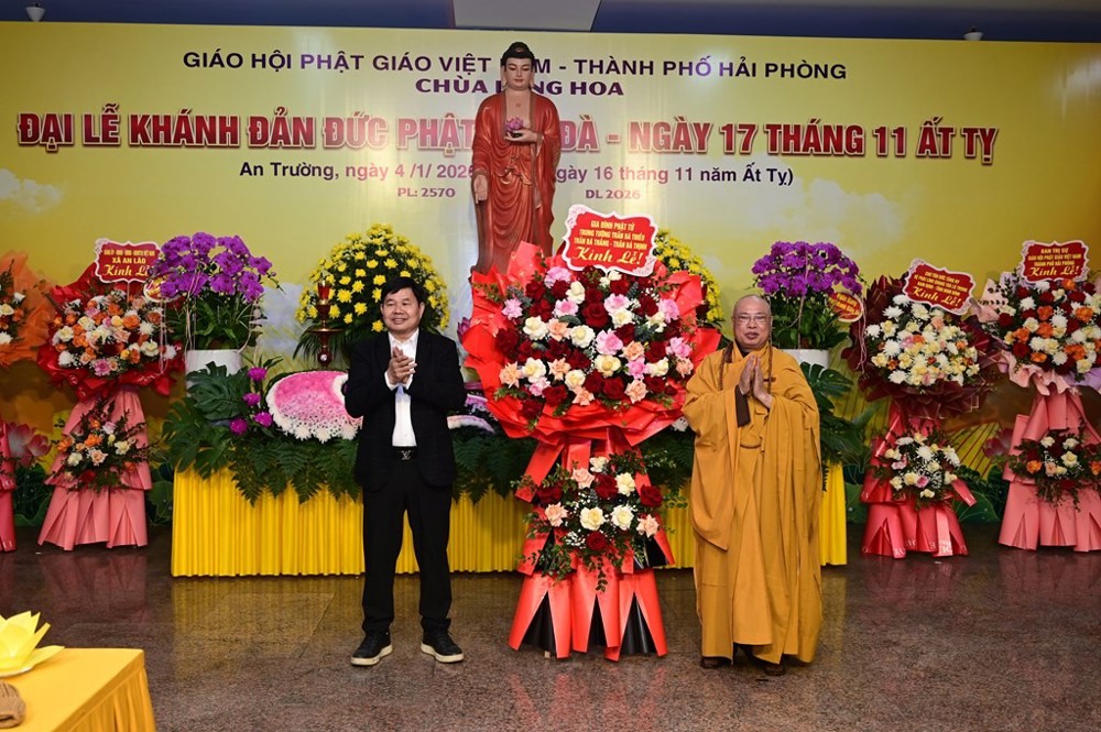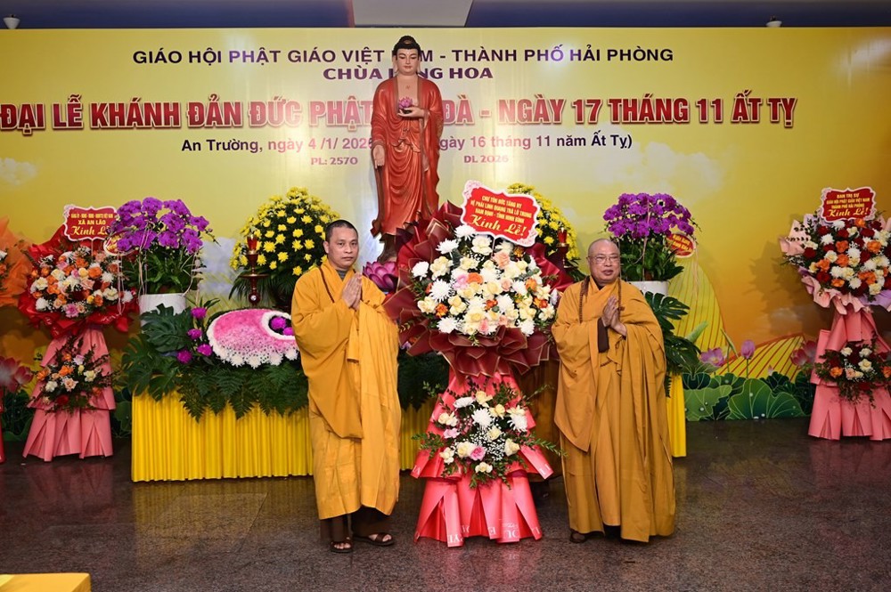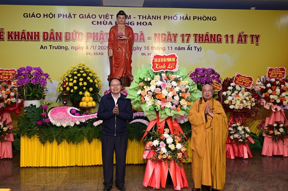 Quang lâm chứng minh và tham dự buổi lễ có Hòa thượng Thích Thanh Giác – Viện chủ Tổ đình Long Hoa, Trưởng Ban Điều hành hệ phái Linh Quang Trà Lũ Trung, Trưởng Ban Tổ chức đại lễ; Thượng tọa Thích Thanh Lợi – Phó ban kiêm Chánh Thư ký Ban Nghi lễ Trung ương GHPGVN, Trưởng Sơn môn Linh Quang Trà Lũ Trung; Thượng tọa Thích Bản Điền – Ủy viên Thường trực, Phó Chánh Văn phòng Ban Trị sự GHPGVN thành phố Hải Phòng, phụ trách Phật giáo xã An Trường; Thượng tọa Thích Giác Huy – Ủy viên Thường trực Ban Trị sự GHPGVN thành phố, phụ trách Phật giáo phường An Hải; cùng đông đảo chư Tôn đức Tăng Ni trụ trì các tự viện nội, ngoại thành Hải Phòng và các tỉnh, thành lân cận.