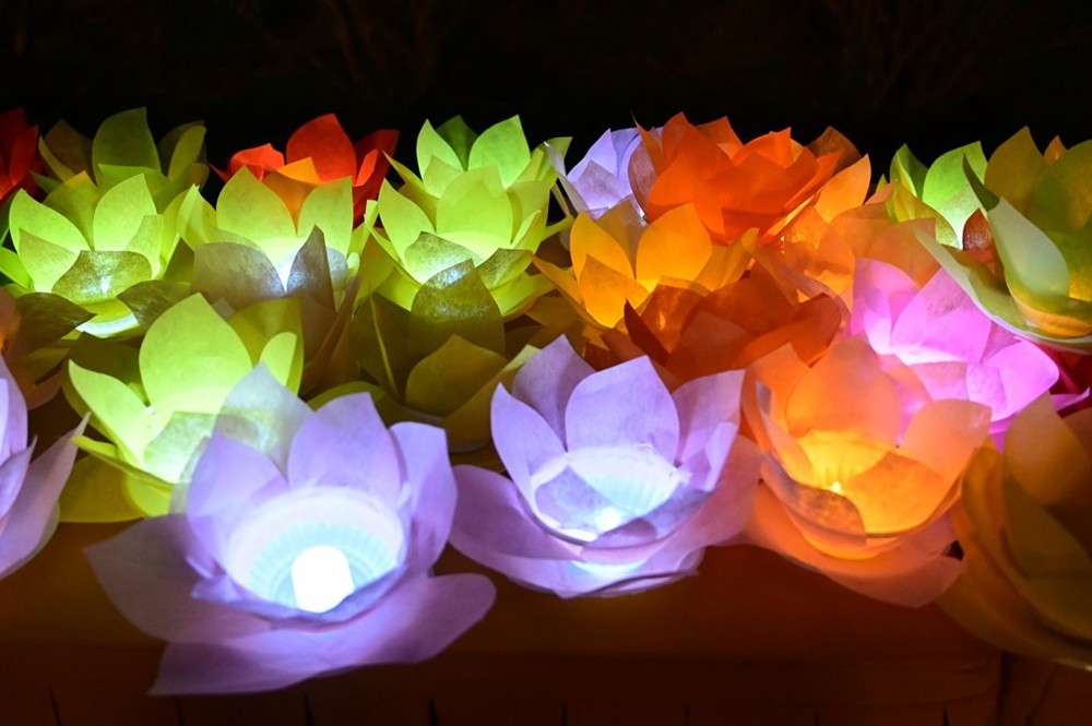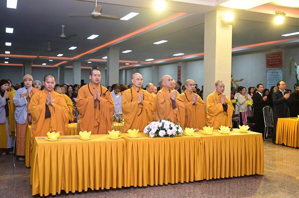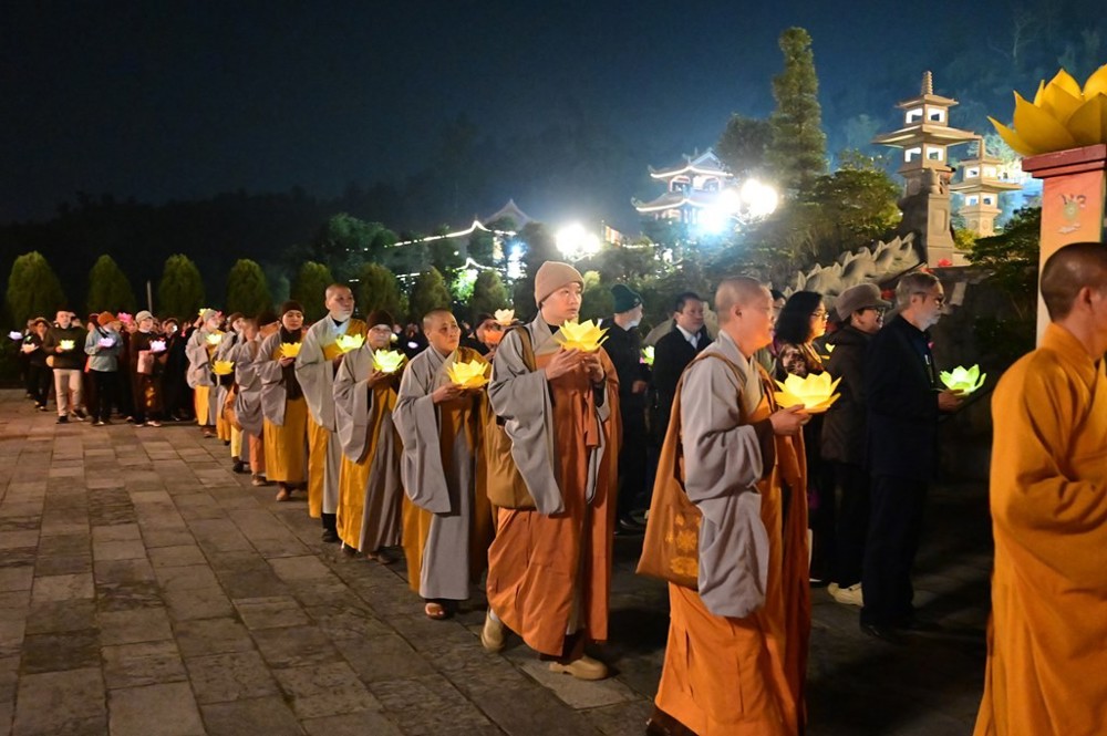 Trong không khí trang nghiêm, chư Tôn đức và toàn thể đại chúng đã thành kính dâng hương bạch Phật, cầu nguyện thế giới hòa bình, chúng sinh an lạc, Phật pháp trường tồn. Tiếp đó là nghi thức dâng hoa đăng, nhiễu Phật và đồng thanh niệm danh hiệu Đức Phật A Di Đà quanh khuôn viên chùa Long Hoa. Những ngọn hoa đăng lung linh dần tỏa sáng khắp không gian, biểu trưng cho ánh sáng từ bi và trí tuệ, sưởi ấm tâm hồn của mỗi người con Phật và làm nên một đêm lễ đầy cảm xúc thiêng liêng.