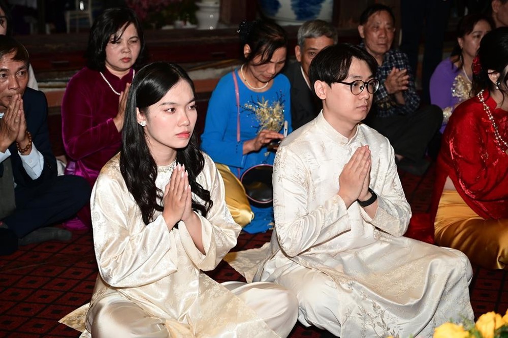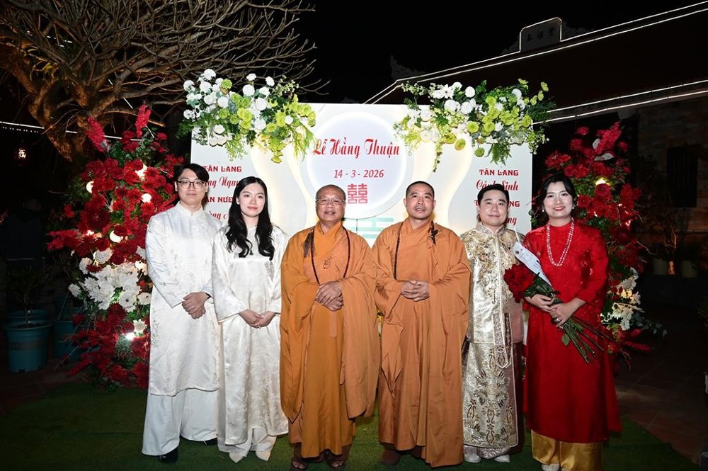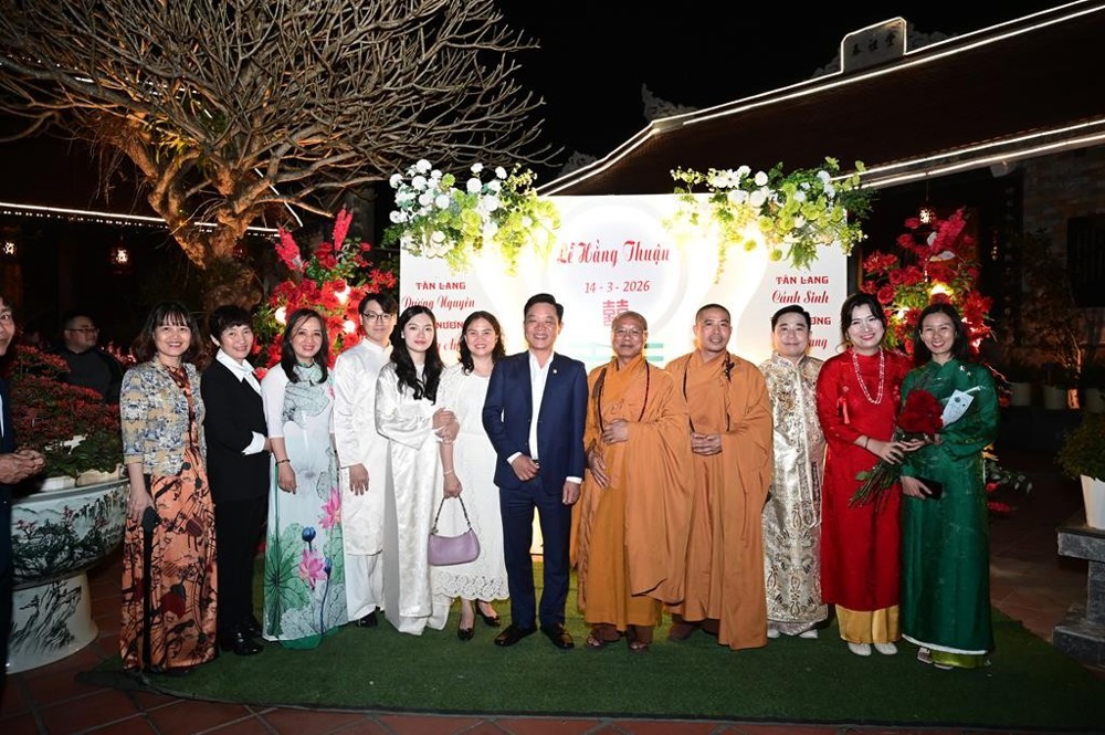 PSO - Tối ngày 14/3/2026 (nhằm ngày 26 tháng Giêng năm Bính Ngọ), hai đôi bạn trẻ: Tân lang Nguyễn Dương Nguyên kết hôn cùng Tân nương Nguyễn Hoàng Anh và Tân lang Trần Cảnh Sinh kết hôn cùng Tân nương Trần Thị Đài Trang, cùng hai bên gia đình đã vân tập về chùa Hồng Phúc, phường Kiến An, thành phố Hải Phòng để tổ chức lễ Hằng thuận đầu xuân.