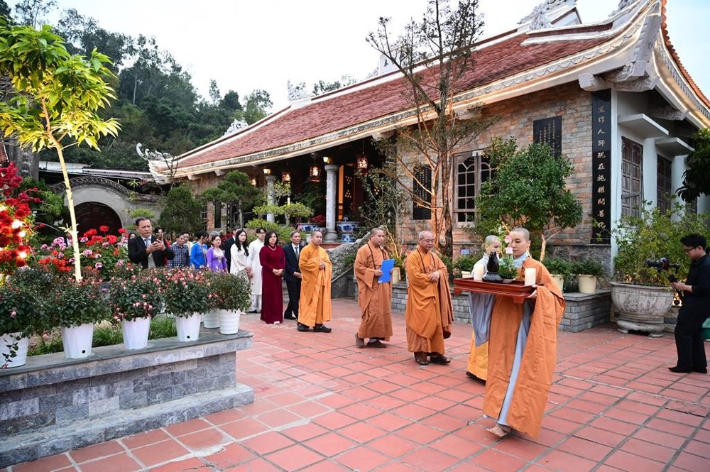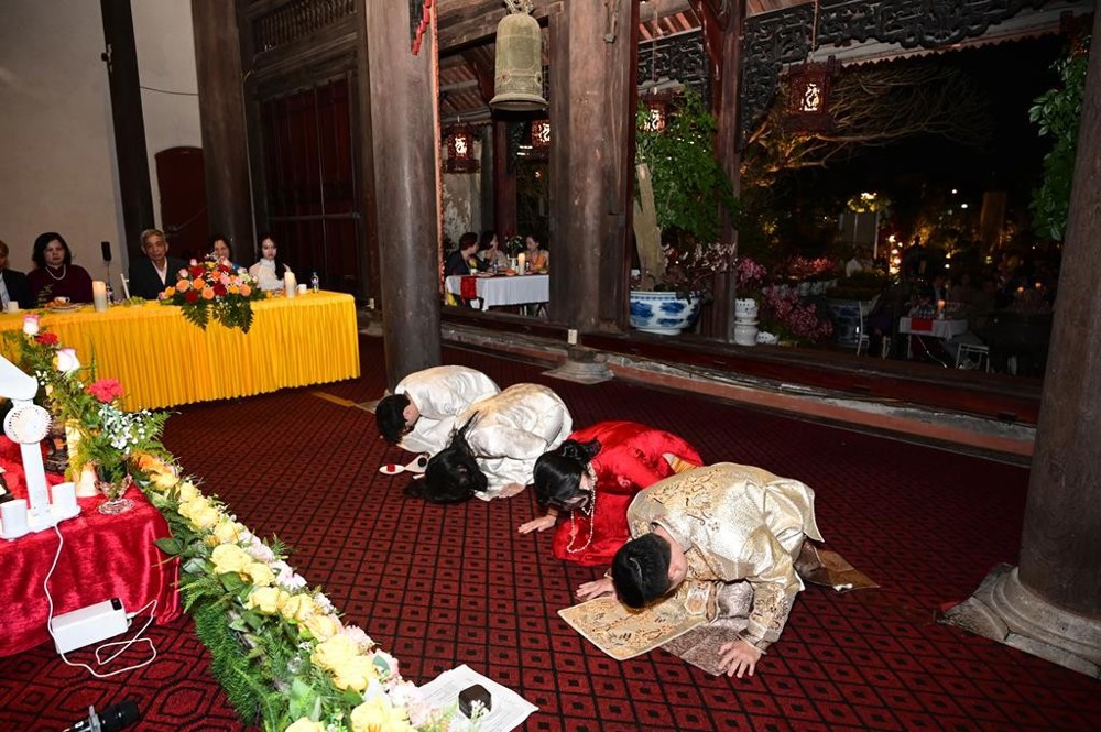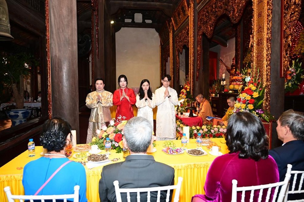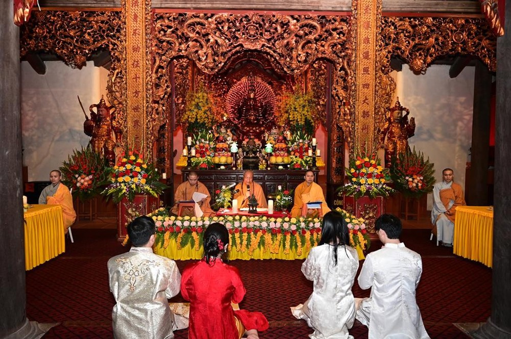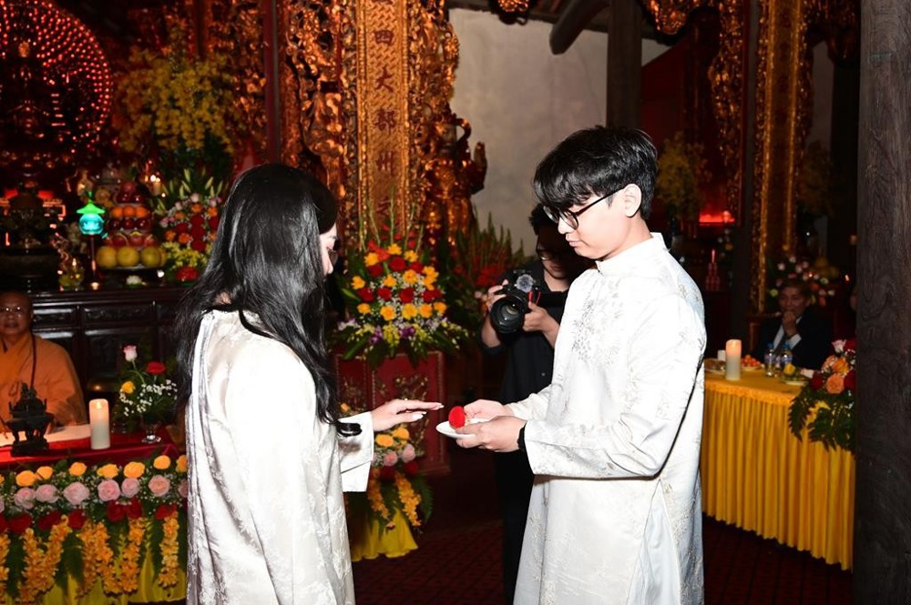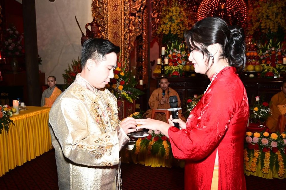 Dưới sự gia hộ của mười phương chư Phật và sự chứng minh của chư tôn đức Tăng Ni, hai đôi bạn trẻ đã làm lễ tạ ơn Tam Bảo, lễ thụ ân cha mẹ. Đồng thời, để thể hiện sự kính trọng, bình đẳng trên tinh thần Từ bi – Vô ngã – Vị tha của đạo Phật, đôi bạn trẻ đã lễ lạy nhau thông qua nghi thức “Lễ bình đẳng”.