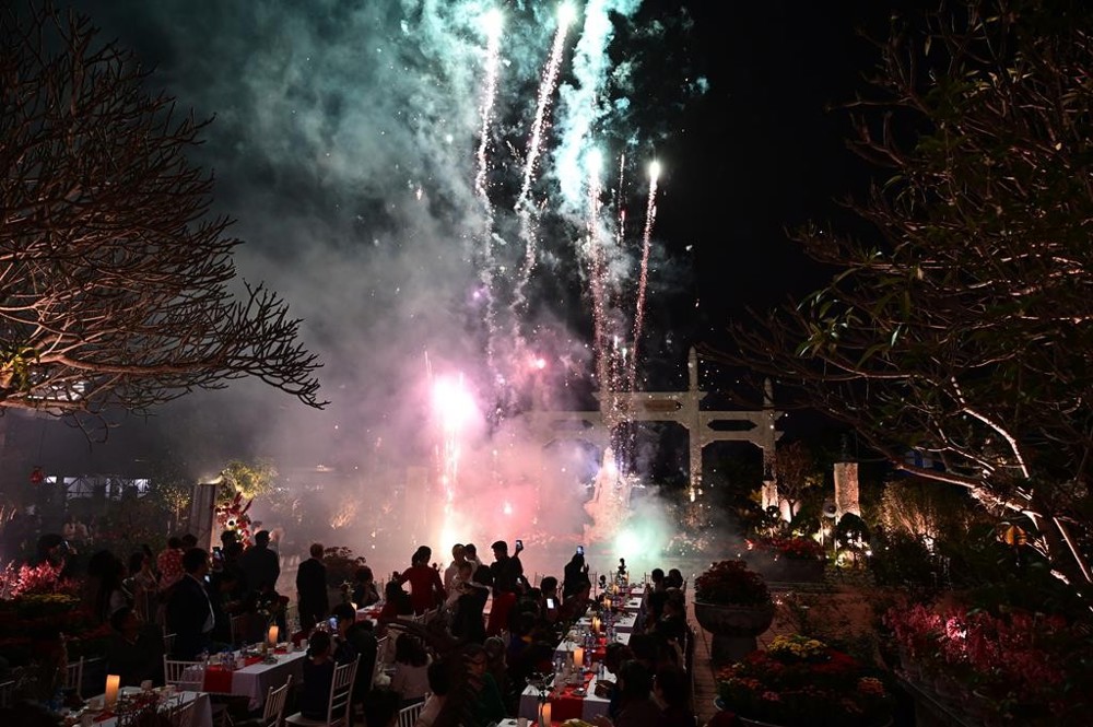 Khép lại buổi lễ Hằng thuận là màn bắn pháo hoa ấn tượng, đặc sắc chúc phúc cho hai đôi bạn trẻ.