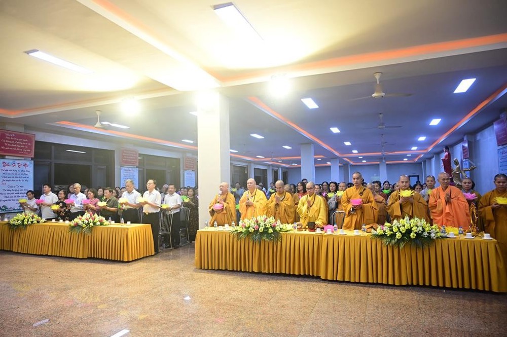 Tại buổi lễ, chư Tôn đức cùng toàn thể đại chúng đã thành kính dâng hương, bạch Phật, cúng dường Tam Bảo, trì tụng Đại Bi Thập Chú, Bát Nhã Tâm Kinh, cầu nguyện thế giới hòa bình, chúng sinh an lạc, Phật pháp trường tồn.