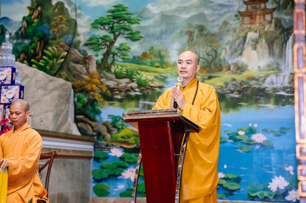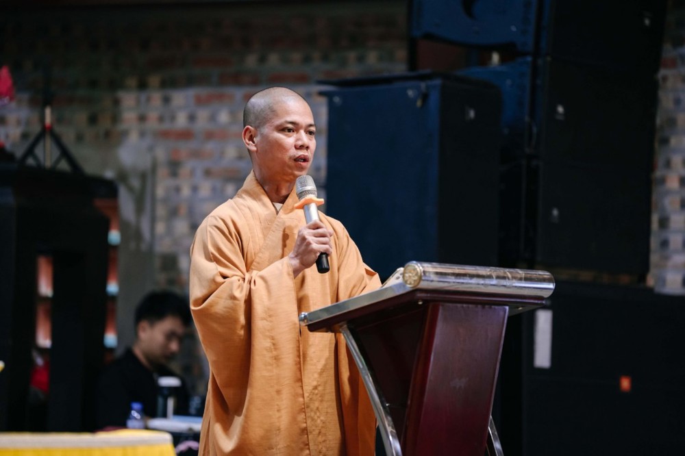 Thượng toạ đã nói lên nguồn gốc của đạo Phật, vai trò của đạo Phật trong đời sống và ý nghĩa chủ đề khoá tu mà Ban tổ chức đã đặt ra “Trau dồi đạo đức – Soi sáng tâm con”, nếu các bạn trẻ là những con người có đạo đức, có hiểu biết và có trí tuệ, thì các bạn sẽ tự soi sáng được tâm của mình, tự sửa đổi thân tâm của mình. Trong kinh Đức Phật đã dạy: “Thân người khó được, Phật pháp khó nghe” nghĩa là được làm thân người đã khó, nhưng được gặp Phật Pháp lại càng khó hơn, nên nếu được làm thân người thì chúng ta cần phải cố gắng, siêng năng tu học, trau dồi đạo đức, trau dồi thân tâm; nếu các em thực hành theo đúng lời Phật dạy thì các em sẽ có cuộc sống an lạc, hạnh phúc ngay ở giây phút hiện tại.