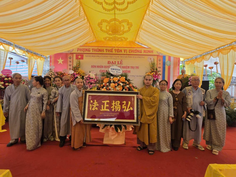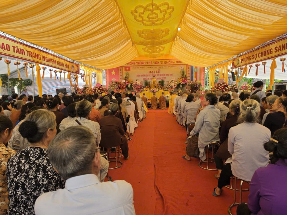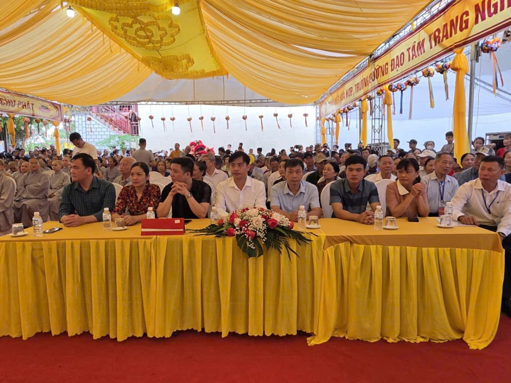 Quang lâm chứng minh buổi lễ có: Hòa thượng Thích Thanh Vân – Phó Ban Nghi lễ T.Ư, Phó Trưởng ban Thường trực Ban Trị sự Phật giáo thành phố (PGTP). Chư Tôn đức Tăng Ni trụ trì, trú xứ thành phố cùng đại diện lãnh đạo địa phương và đông đảo thiện tín Phật tử và đồng bào các giới về chúc mừng.