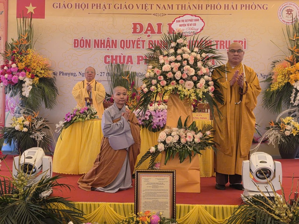 PSO- Sáng ngày 27/4/2026 (11 tháng ba Bính Ngọ) trong không khí trang nghiêm, thanh tịnh và thắm tình đạo vị, tại chùa Phúc Nghiêm, thôn Quan Lộc, xã Lạc Phượng, Hải Phòng, đã diễn ra lễ công bố Quyết định bổ nhiệm Sư cô Thích An Nhẫn làm trụ trì chùa.