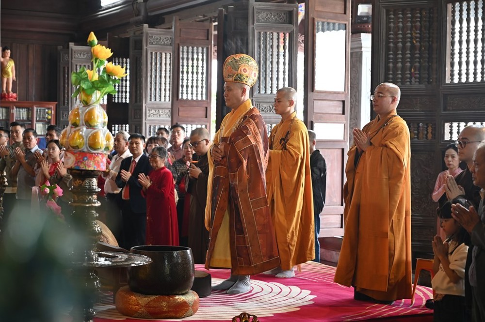 Quang lâm chứng minh và chúc phúc cho đôi bạn trẻ có sự hiện diện của Hòa thượng Thích Thanh Giác – Trụ trì chùa Long Hoa, Trưởng BTC buổi lễ; Thượng tọa Thích Giác Sơn – Ủy viên BTS GHPGVN Thành phố Hải Phòng, chư Tăng chùa Phổ Chiếu; Thượng tọa Thích Thanh Quang – Chánh Thư ký, Phó Ban Trị sự GHPGVN tỉnh Hưng Yên, cùng chư Tôn đức Tăng Ni trụ trì các chùa trong và ngoài Thành phố Hải Phòng.