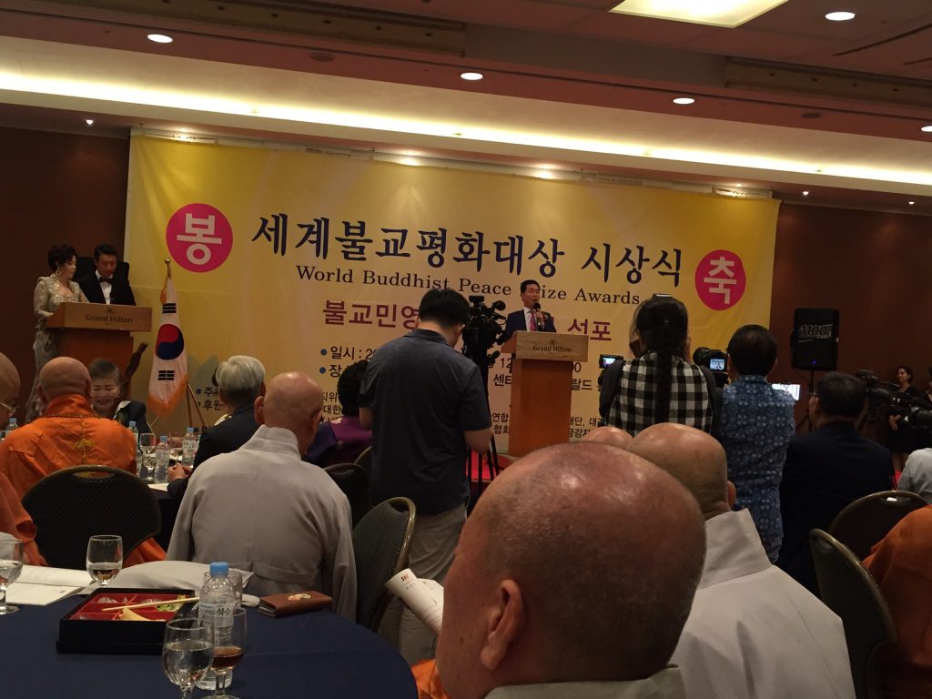 Tại Lễ trao giải thưởng, Hoà thượng Si Mong- Trưởng Ban Giám khảo, Chủ tịch Ủy ban tổ chức Giải hoà bình Phật giáo thế giới; thay mặt Phật giáo Hàn Quốc đã lần lượt trao giải thưởng cho chư Tôn đức Phật giáo các nước.