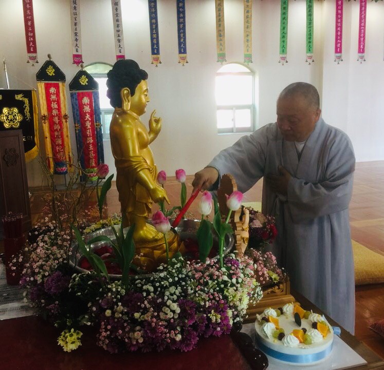Đại lễ bắt đầu bằng Nghi thức Rước Tôn tượng Sơ sanh. Tiếp đến, chư Tôn đức niêm hương bạch Phật, cử hành Nghi thức kính mừng Khánh đản, Tắm Phật, thọ trai.