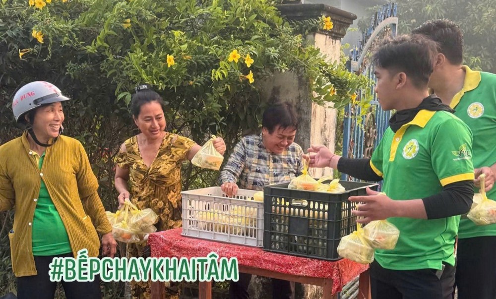 Chị Nguyễn Thị Kim Trang, thành viên Bếp Chay Khai Tâm, cho biết hành trình hơn ba năm qua được duy trì nhờ sự chung tay bền bỉ của các mạnh thường quân và tình nguyện viên. Từ những mớ rau củ do tiểu thương địa phương ủng hộ đến những khoản tịnh tài nhỏ bé của các nhà hảo tâm ở nhiều nơi, tất cả đã góp phần giữ cho “ngọn lửa” của bếp luôn được duy trì.
