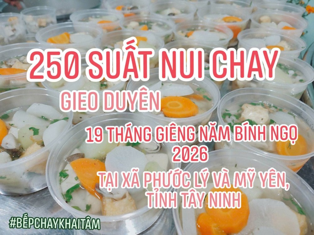 Cột mốc 100 kỳ hoạt động được đánh dấu vào sáng ngày 19 tháng Giêng năm Bính Ngọ (07/03/2026). Trong dịp này, 250 suất nui chay nóng hổi đã được chuẩn bị và trao tặng bà con tại khu vực đường Ba Làng (xã Phước Lý) và chợ Gò Đen (xã Mỹ Yên, tỉnh Tây Ninh). Giữa nhịp sống tất bật của buổi sáng sớm, những phần ăn tuy giản dị nhưng chứa đựng sự quan tâm và sẻ chia chân thành.