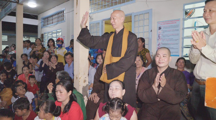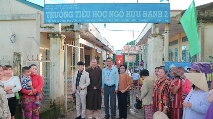 Tham dự buổi phát quà có TT. Thích Thông Hạnh - Trưởng ban Từ thiện tỉnh Hậu Giang; ĐĐ. Thích Phước Thuận - Ủy viên BTS huyện Châu Thành, Trụ trì chùa Ngọc Thiên (ấp Thạnh Thuận, xã Đông Thạnh, huyện Châu Thành, tỉnh Hậu Giang); chú Phật tử Thanh Nhã; cô Phước Linh đạo tràng Như Lai TP.HCM cùng quý Mạnh thường quân và các thầy cô giáo, 600 em thiếu nhi tại 2 điểm trường tiểu học.