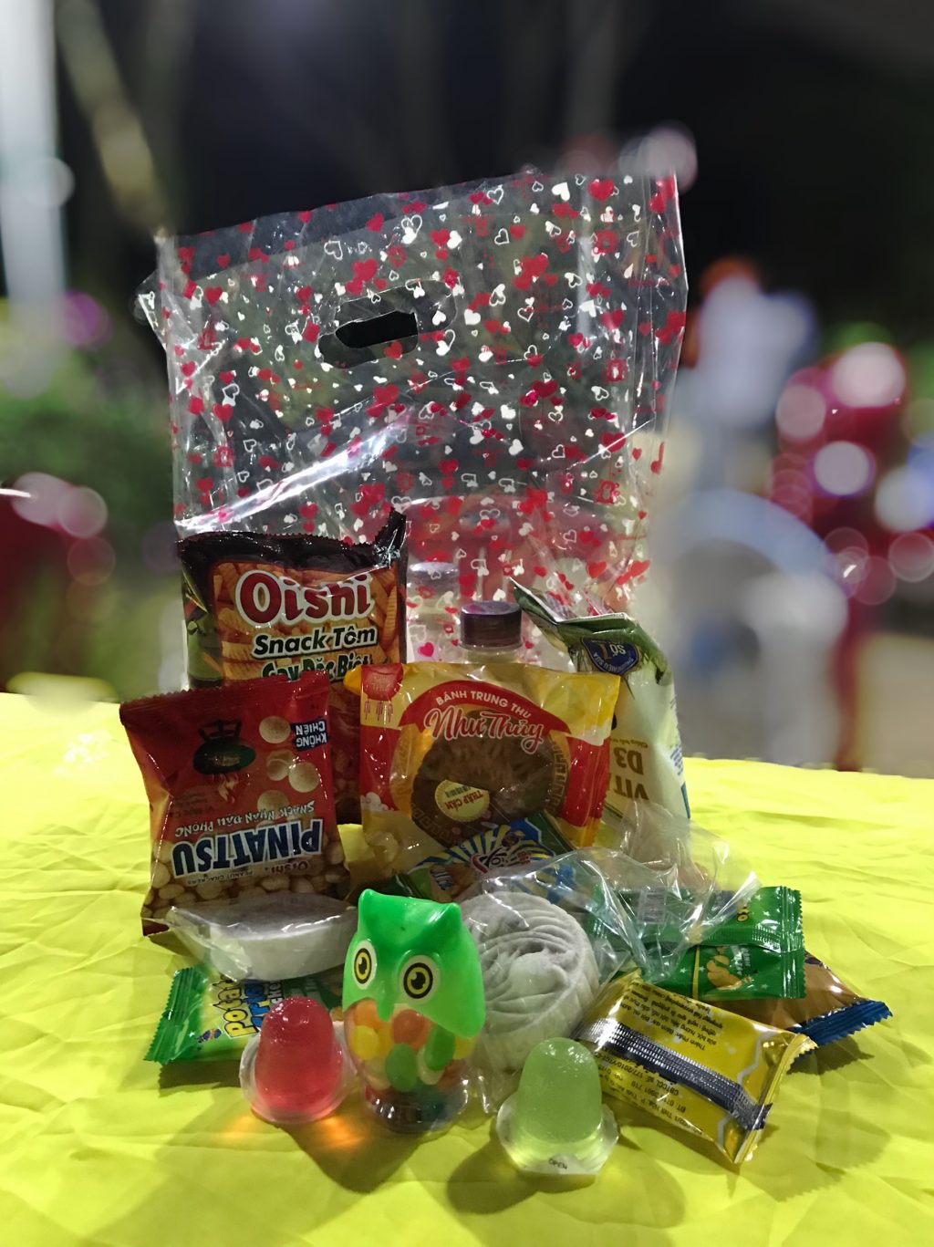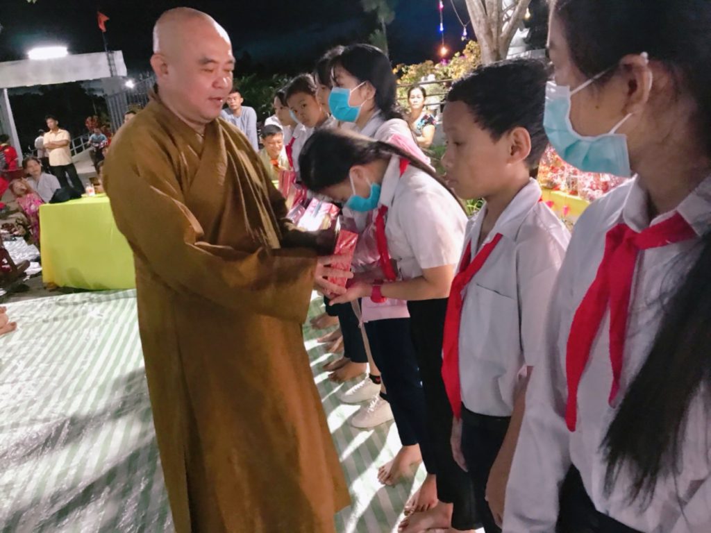 Trong không khí vui tươi, háo hức của đêm hội, chư Tôn đức chùa Viên Minh đã trao hơn 200 phần quà đến tận tay các em, mỗi phần quà gồm bánh, kẹo, đèn lồng… Được biết, những phần quà trên do ĐĐ. Thích Quang Phước vận động quý Phật tử thiện nguyện phát cho các em.