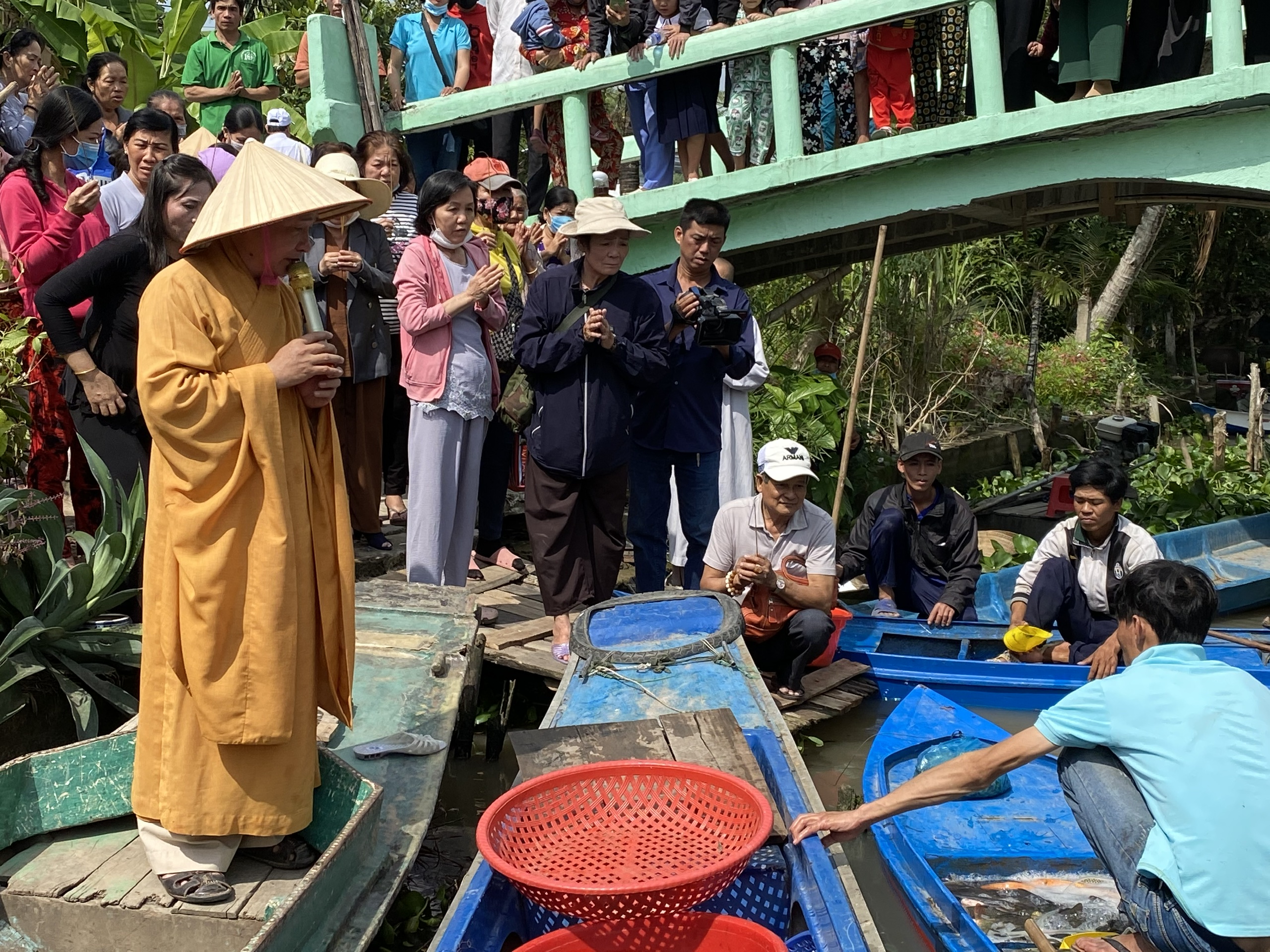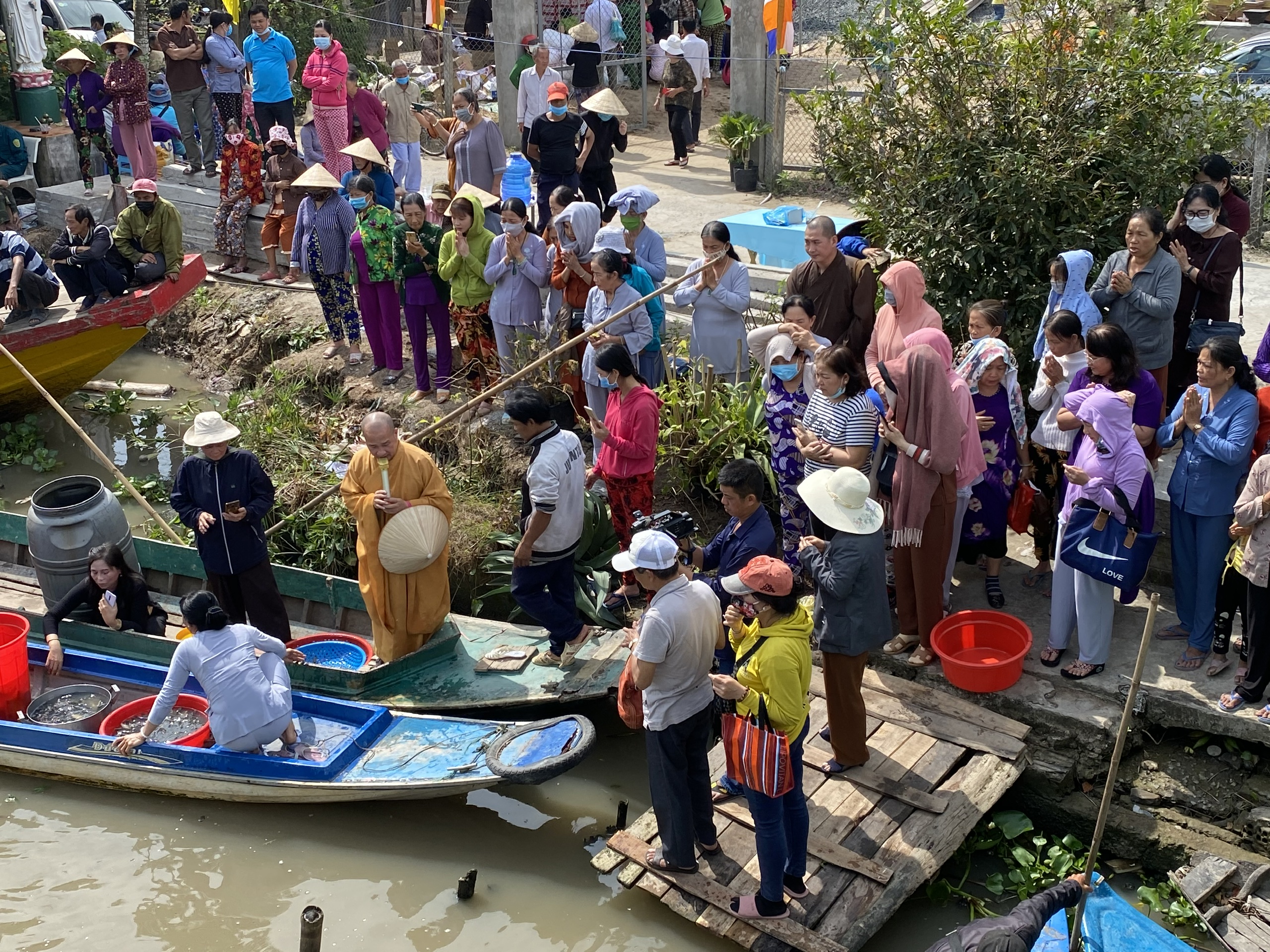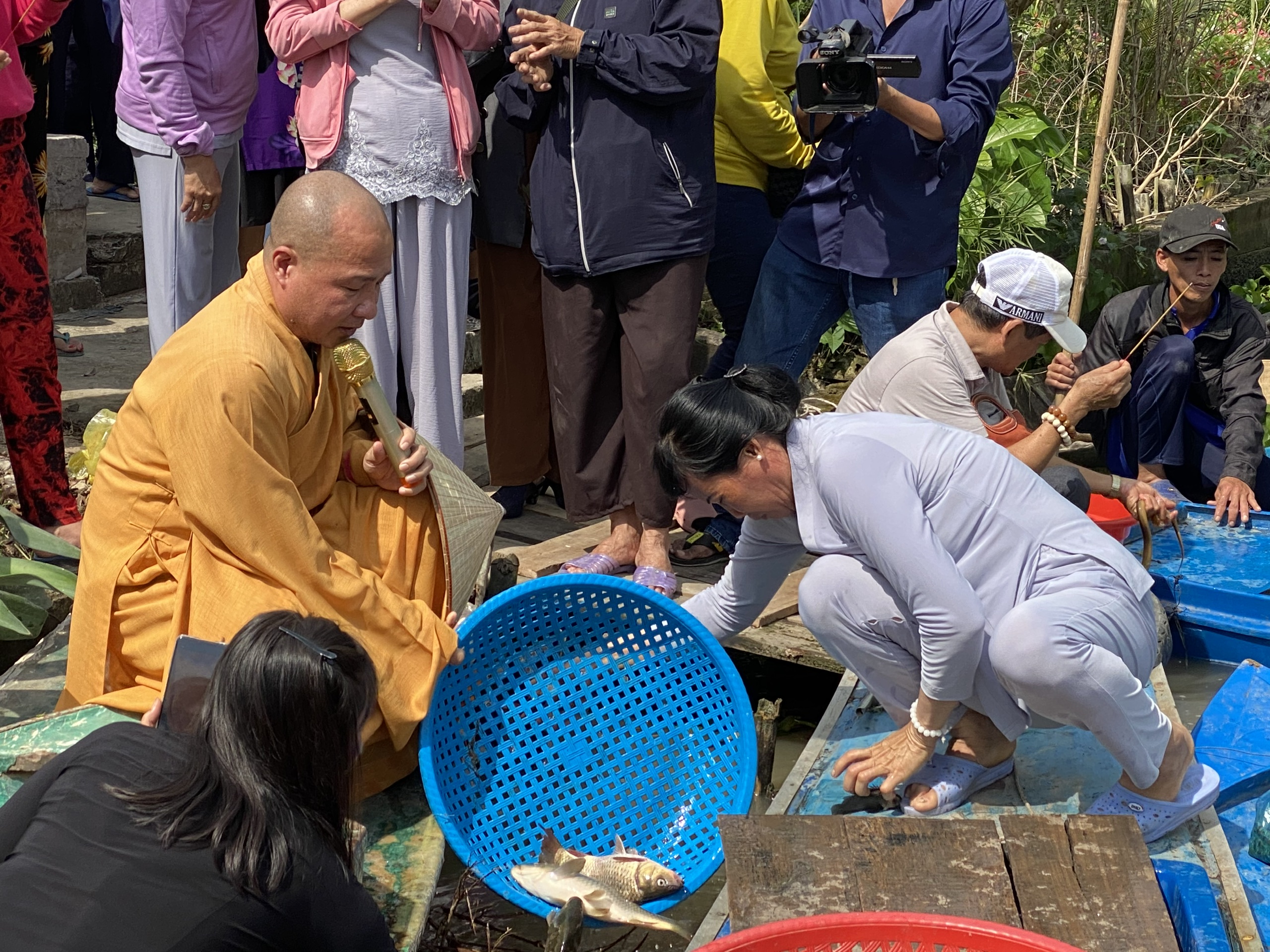 Tiếp đến, thể hiện lòng từ bi, ban vui cứu khổ của nhà Phật, phái đoàn đã thực hiện phóng sanh, đưa các loài thủy tộc về chốn an vui trên con sông trước chùa. Những lời cầu nguyện cho các chúng sanh trong lời Kinh tiếng kệ trầm hùng bên dòng nước êm đềm.