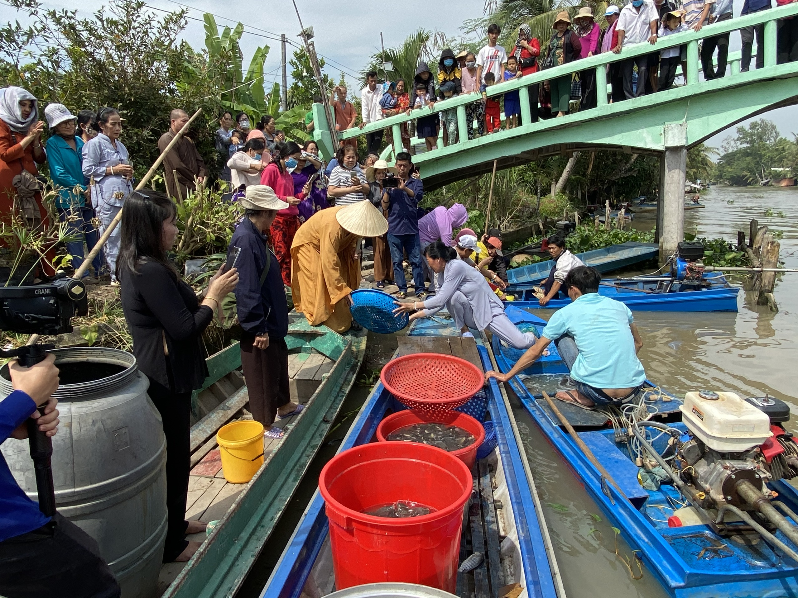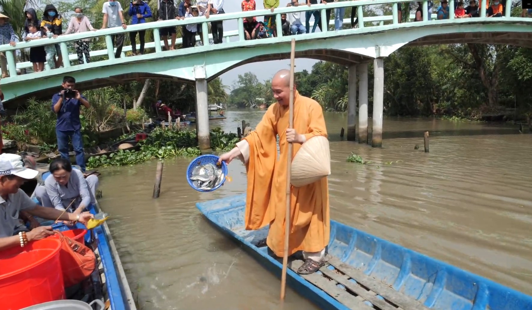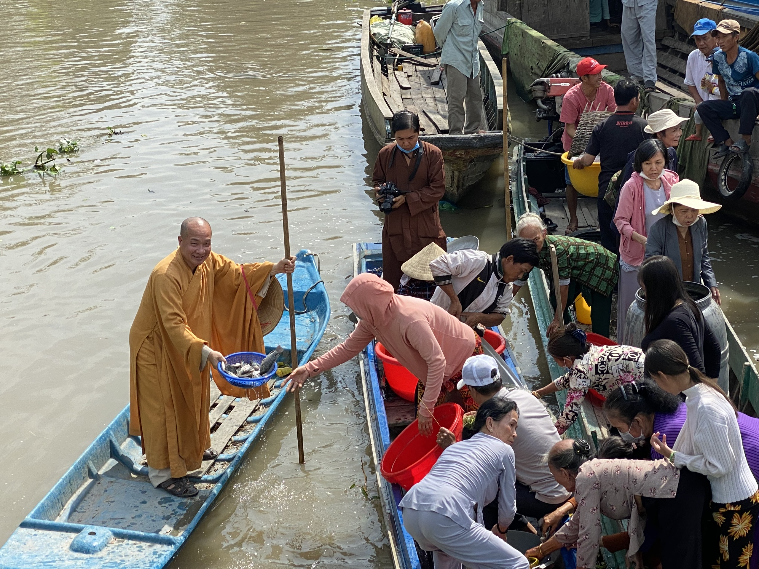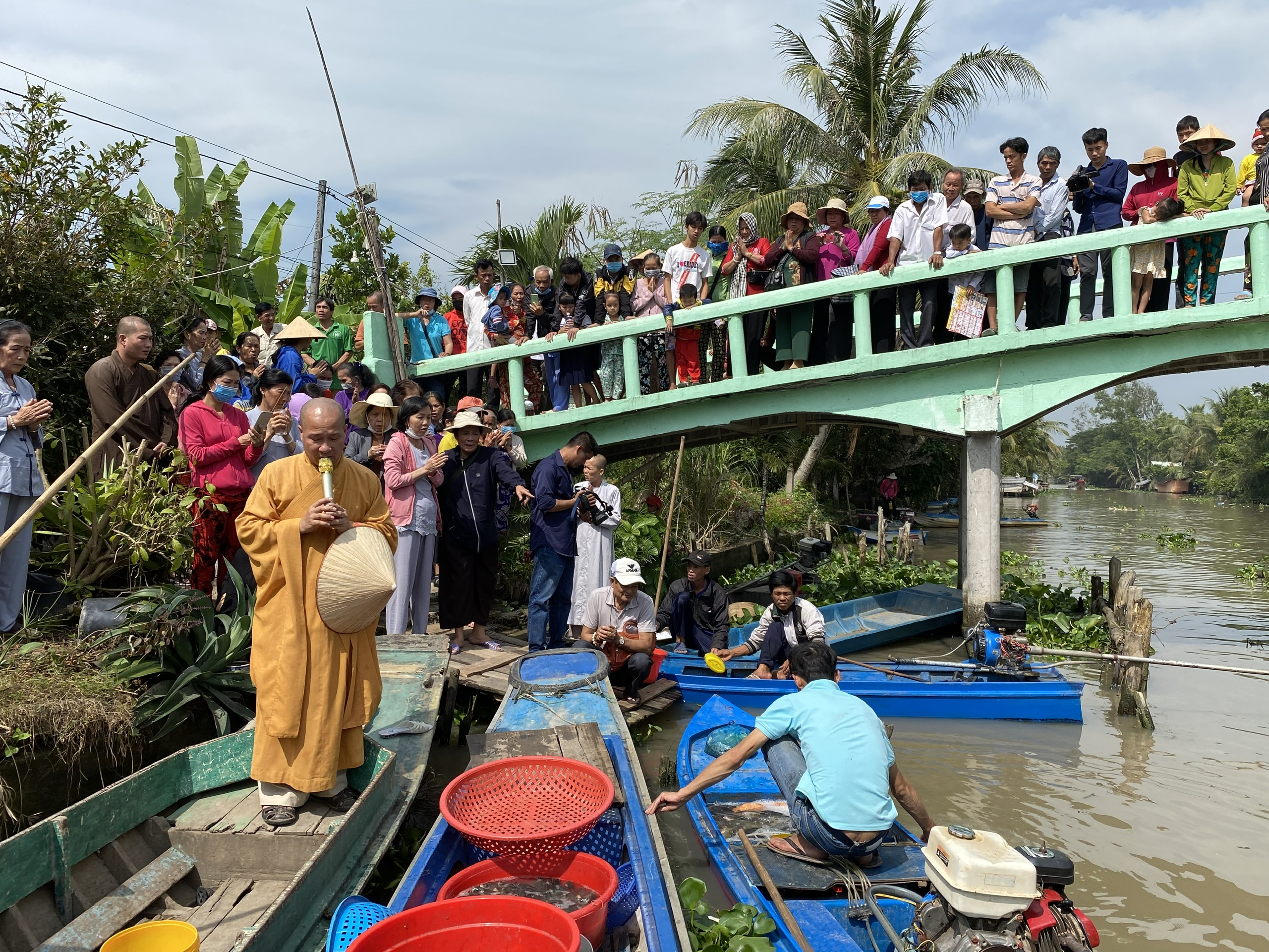 Tiếp đến, thể hiện lòng từ bi, ban vui cứu khổ của nhà Phật, phái đoàn đã thực hiện phóng sanh, đưa các loài thủy tộc về chốn an vui trên con sông trước chùa. Những lời cầu nguyện cho các chúng sanh trong lời Kinh tiếng kệ trầm hùng bên dòng nước êm đềm.