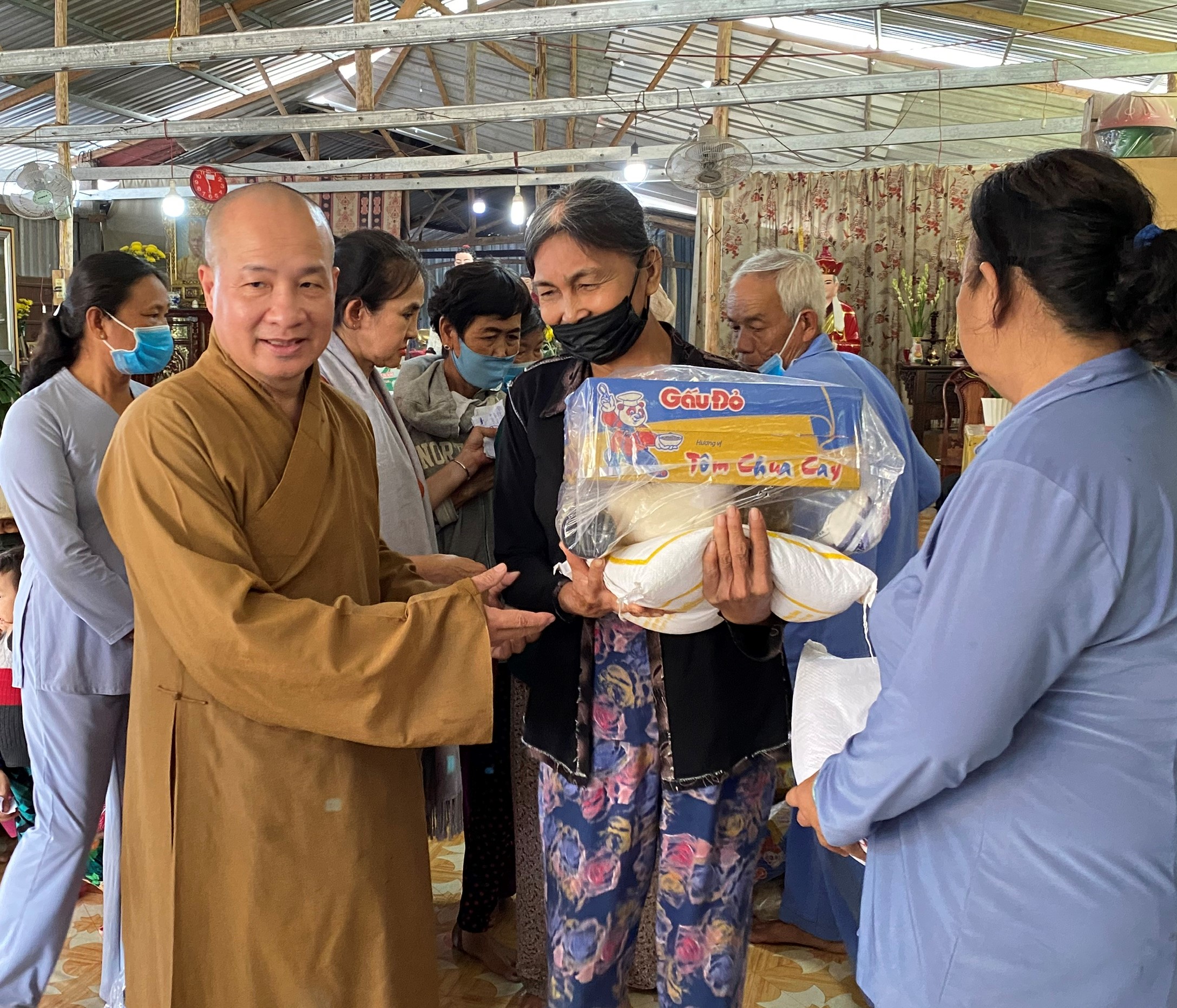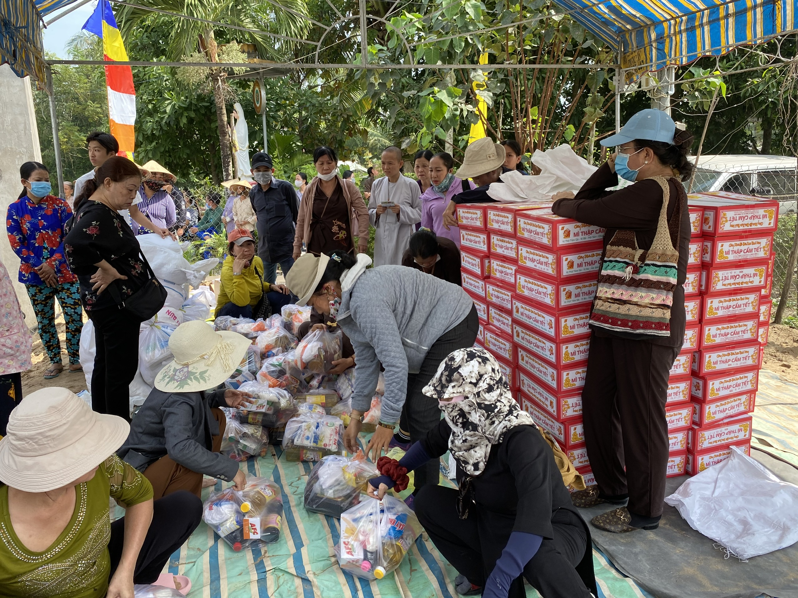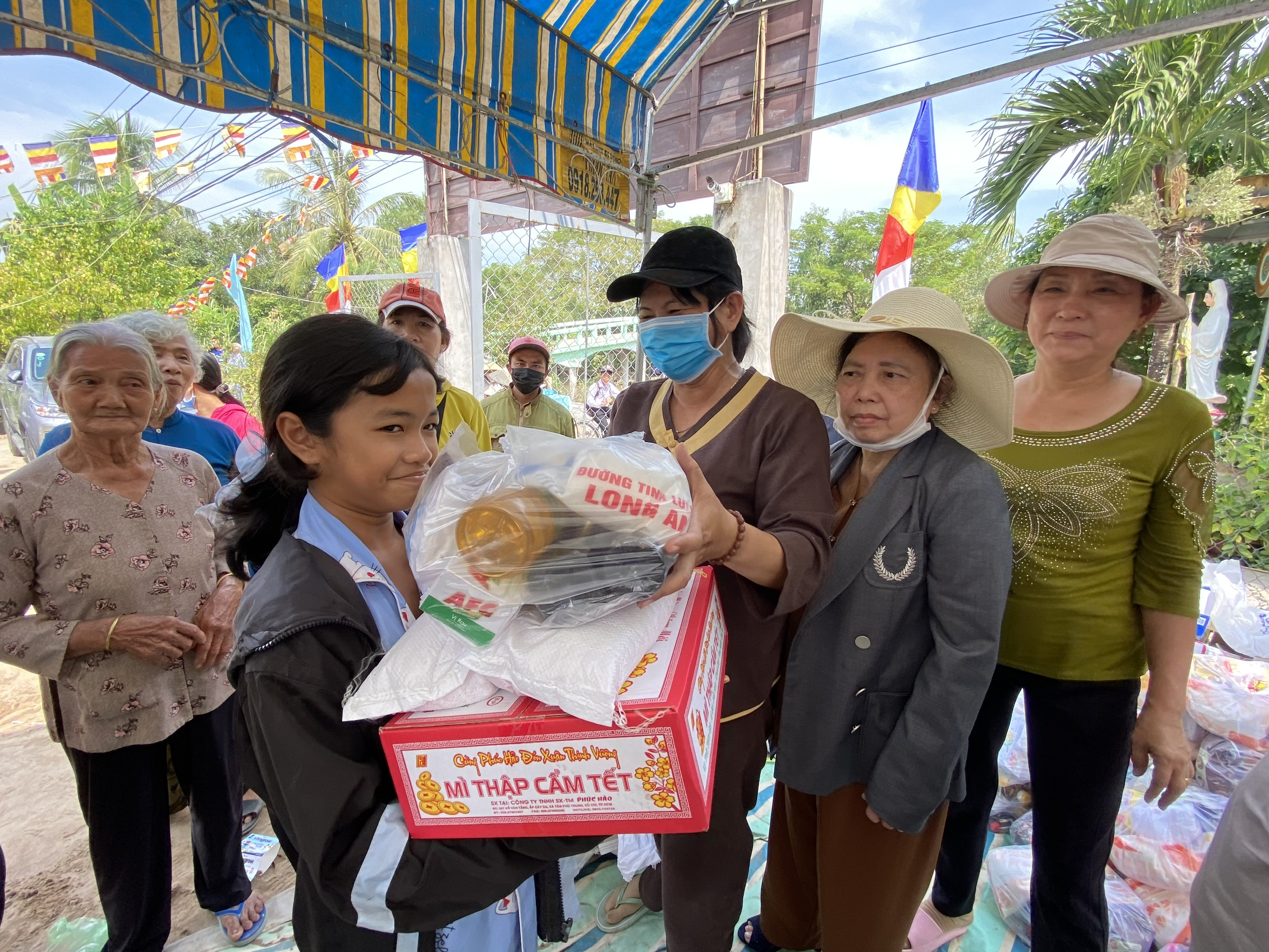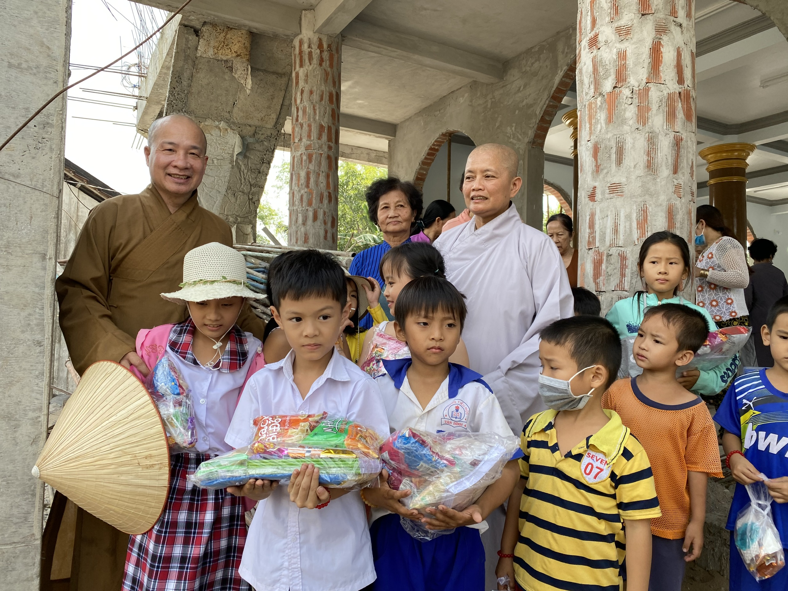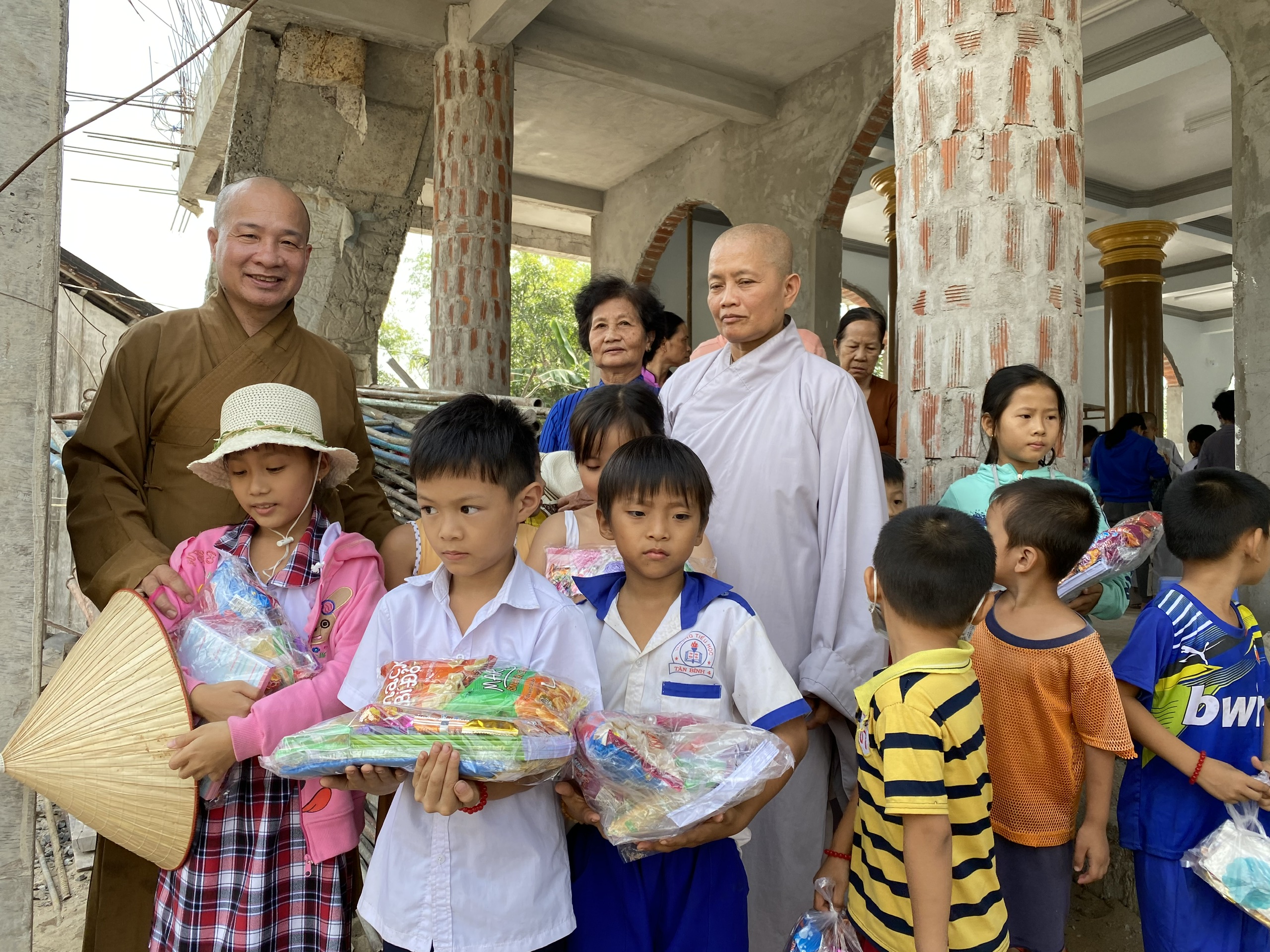 Cuối buổi lễ là chương trình trao tặng 200 suất quà cho bà con có hoàn cảnh đặc biệt khó khăn tại địa phương và 40 suất quà cho các con em Phật tử để bà con an vui đón Tết.