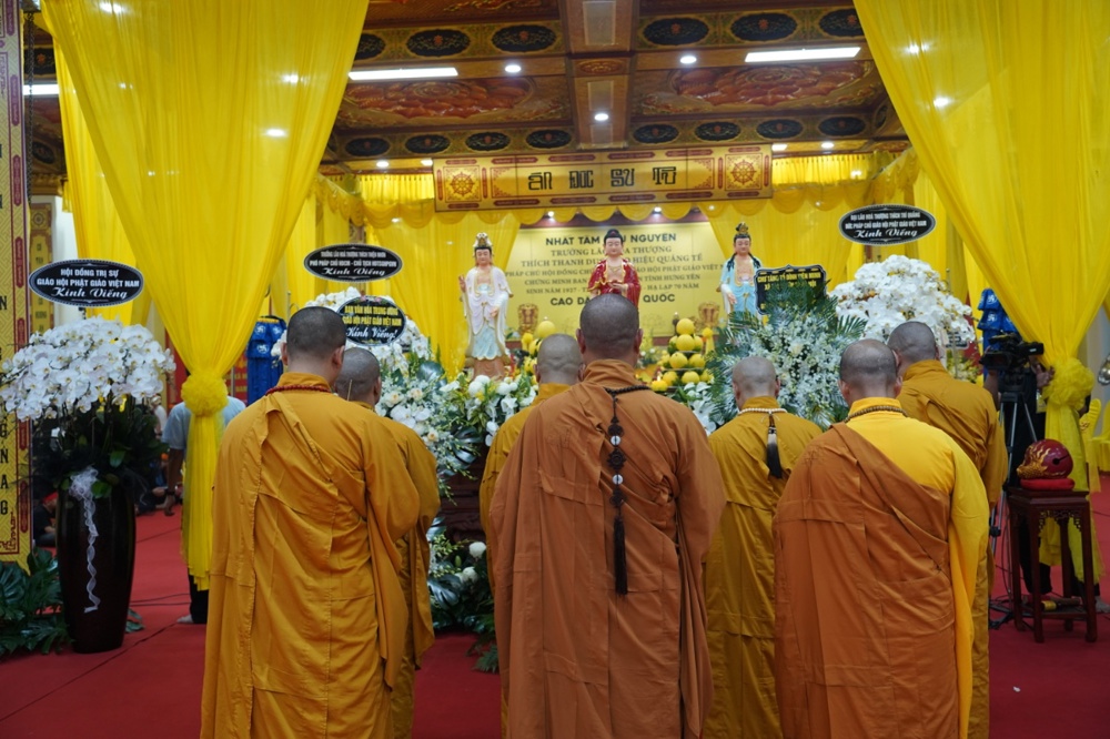 Cùng ngày các phái đoàn chư Tôn đức Ban Trị sự GHPGVN các tỉnh thành, chư Tôn đức giáo phẩm lãnh đạo các Ban, Viện đại diện các cơ quan ban ngành đã đến kính viếng giác linh Trưởng lão Hòa thượng Thích Thanh Dục.