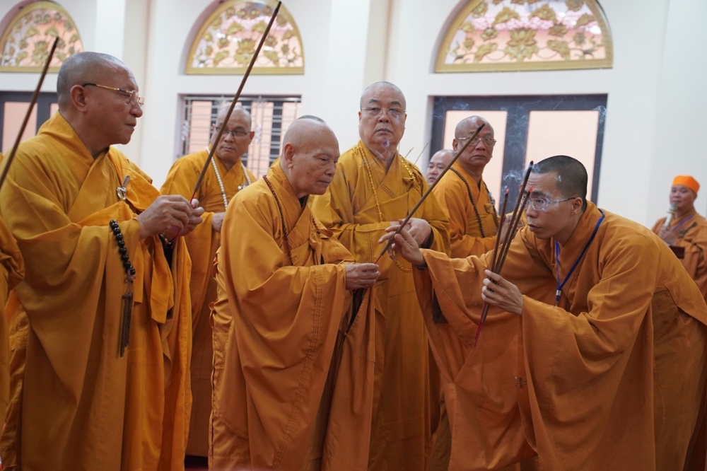 Trước di ảnh của cố Phó Pháp chủ, chư Tôn đức đã thành tâm thắp hương cầu nguyện, dành phút tưởng niệm và chia buồn sâu sắc cùng môn đồ pháp quyến.