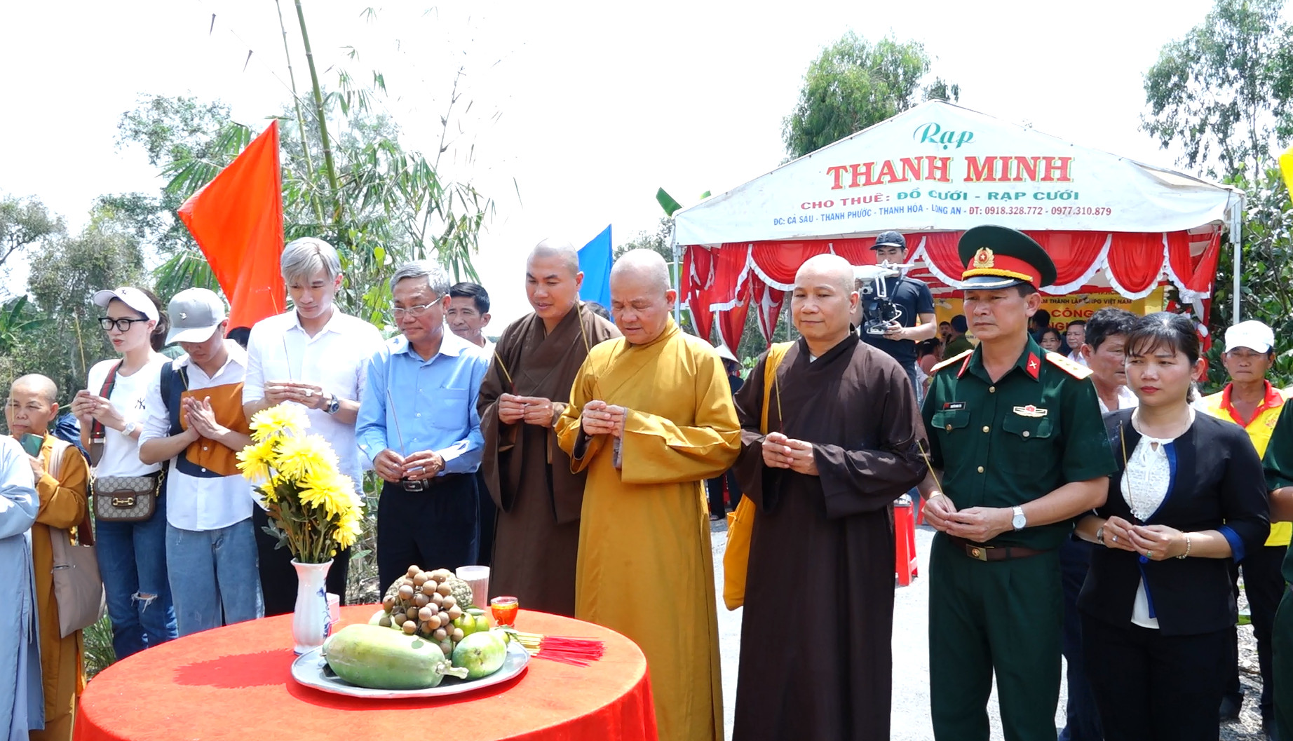 Đặc biệt, buổi lễ có sự quang lâm tham dự của: HT. Thích Minh Thiện - Ủy viên HĐTS, Phó Trưởng ban Hoằng pháp TƯ, Trưởng BTS GHPGVN tỉnh Long An; TT. Thích Đức Hoàng - Phó BTS Phật giáo tỉnh Long An; ĐĐ. Thích Lệ Ngôn - Trưởng ban Hoằng pháp GHPGVN tỉnh Long An. Ông Nguyễn Văn Mưng - Trưởng ban Tôn giáo tỉnh Long An, cùng các cấp chính quyền địa phương và đông đảo bà con đồng tham dự.