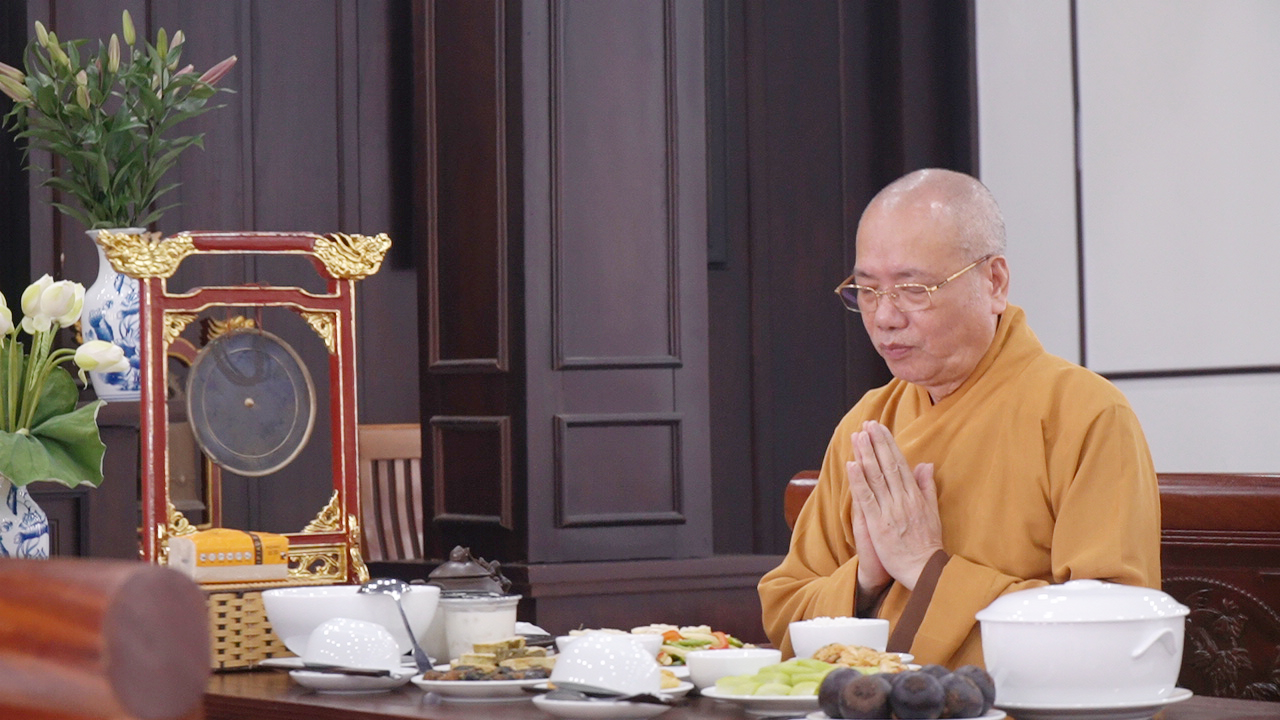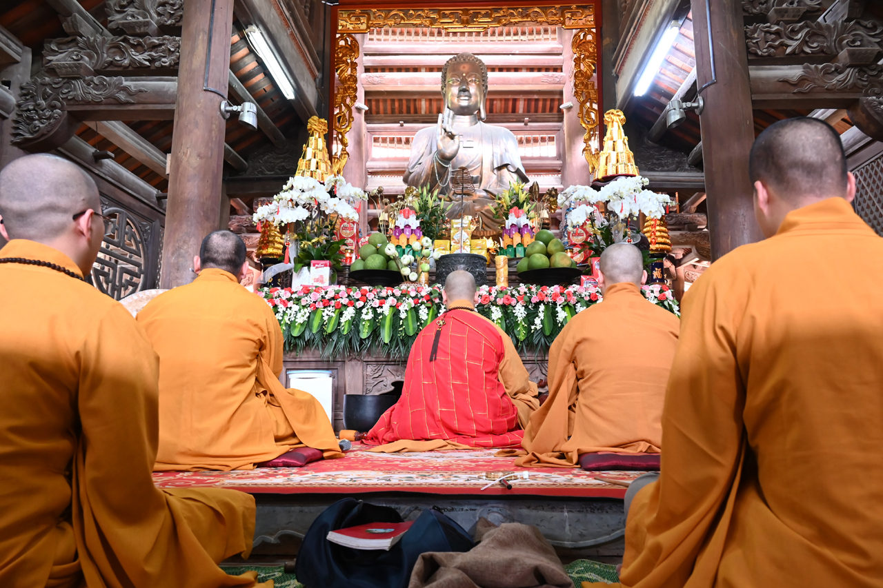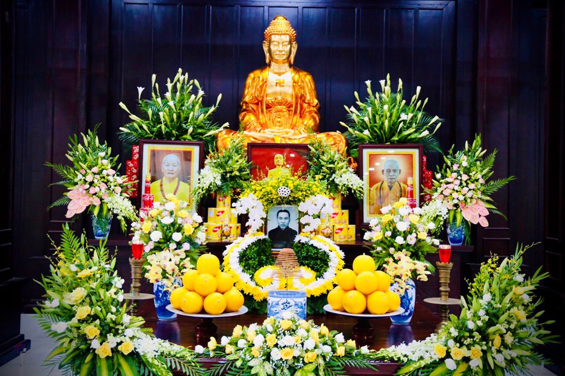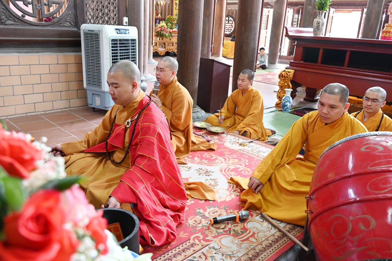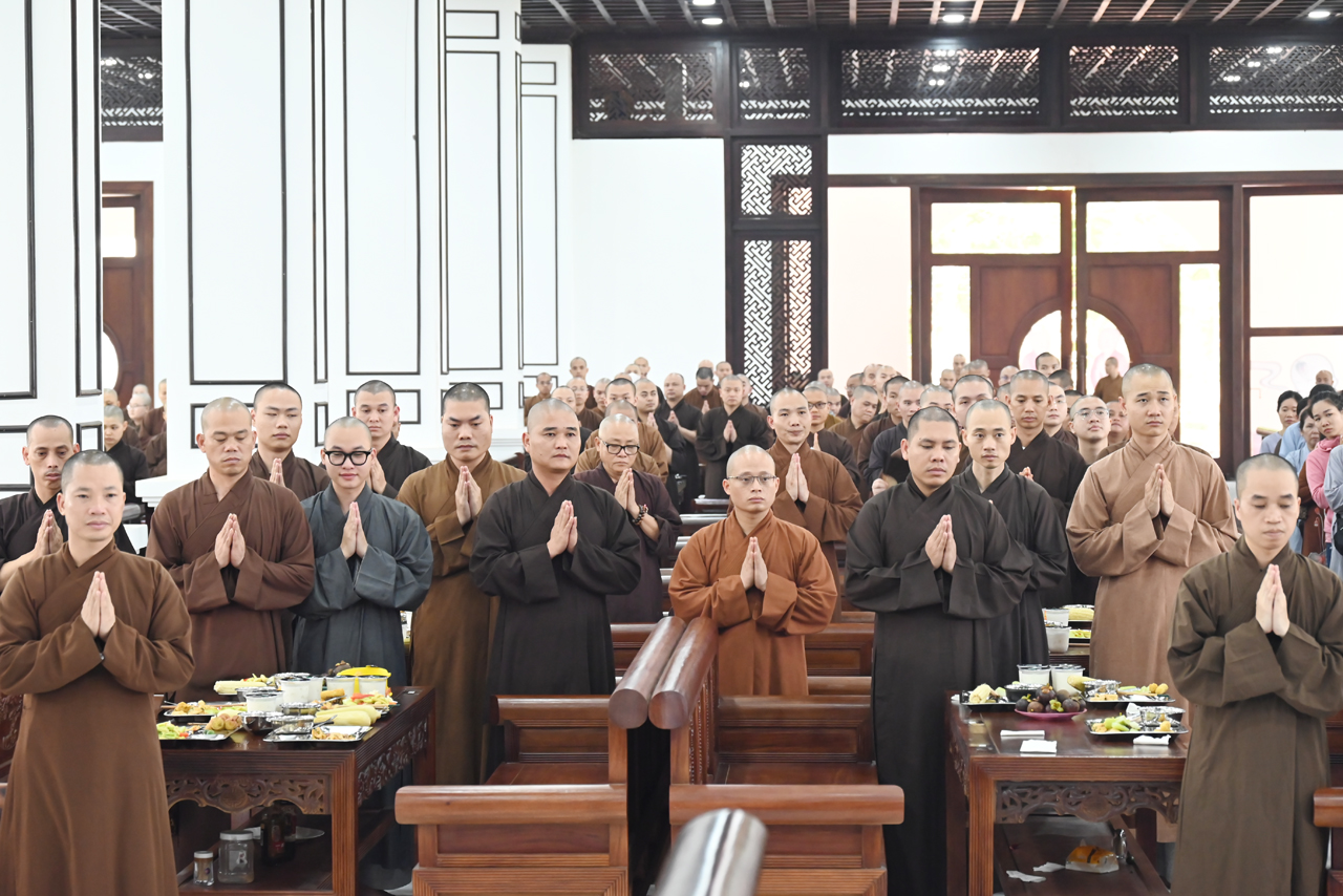 Trước đó, vào buổi sáng cùng ngày, quý Tăng Ni sinh Học viện đã cử hành khoá lễ cúng Phật, cúng Tổ, tụng kinh A Di Đà cúng dàng giác linh cố Hoà thượng.