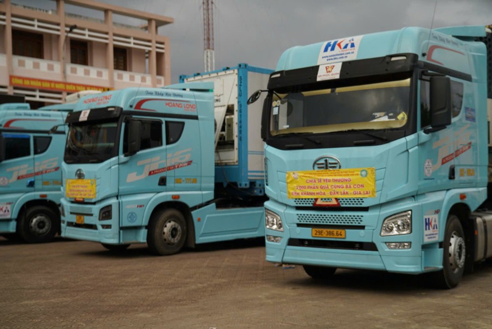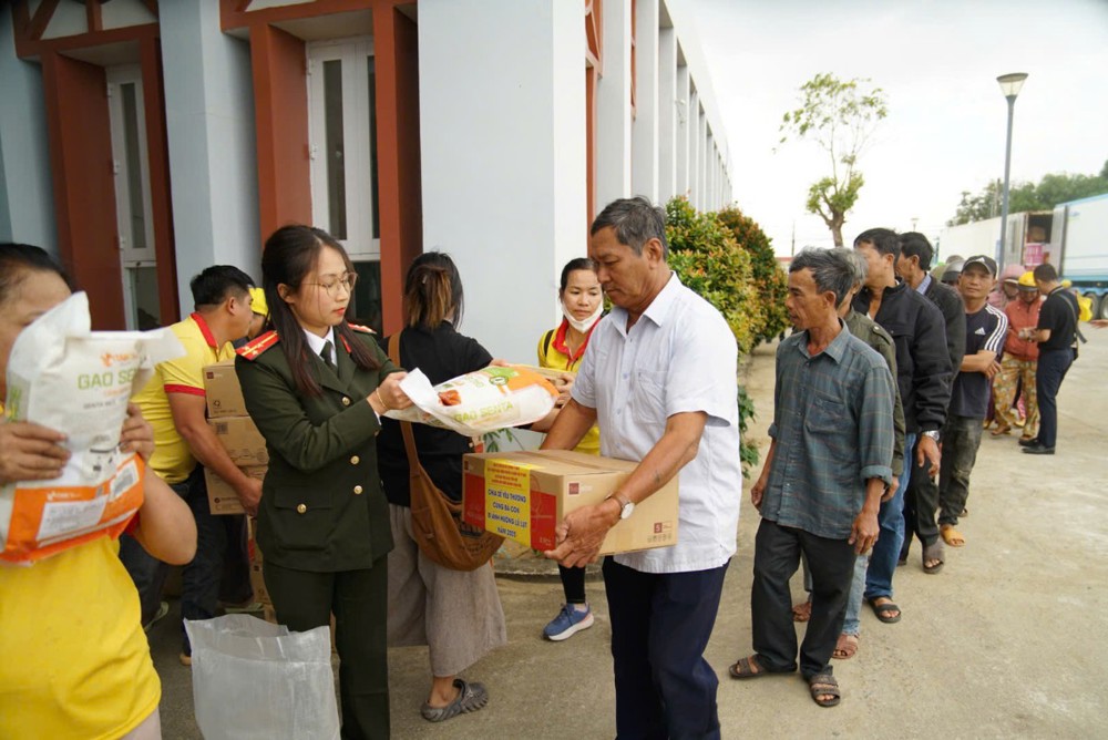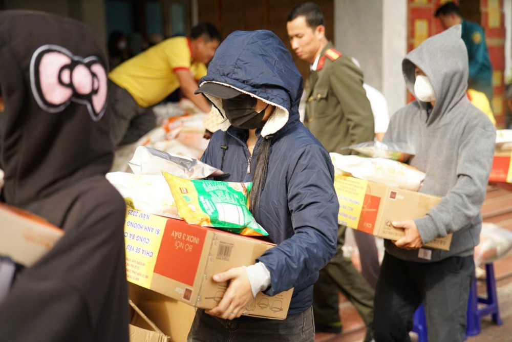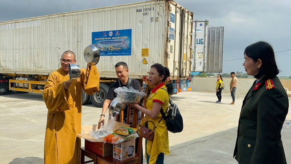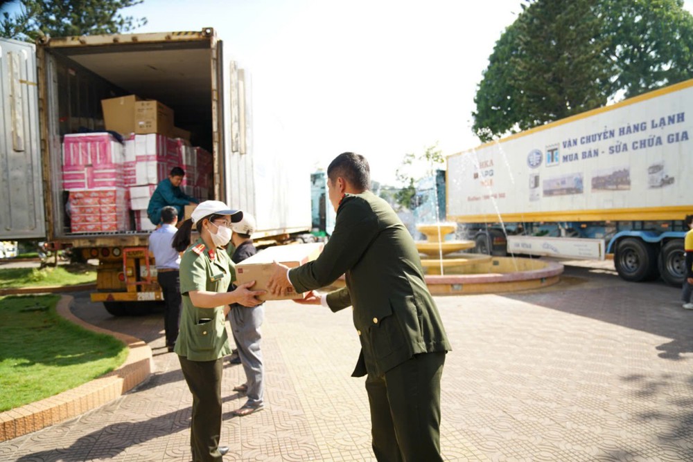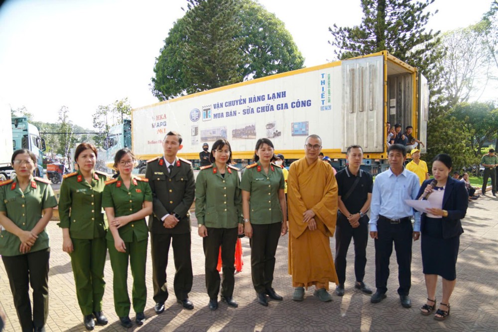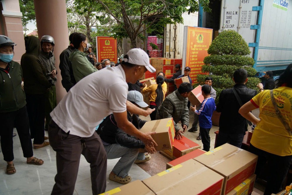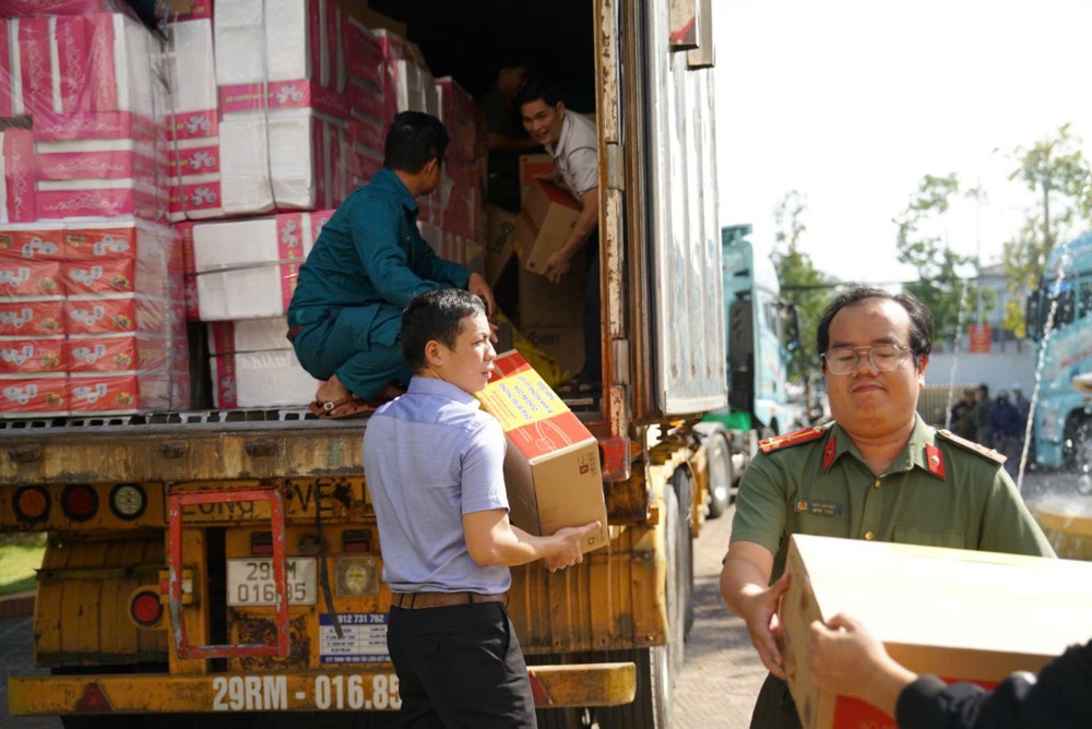Trong suốt hai ngày, các phương tiện vận chuyển gồm xe container và xe tải được đoàn sắp xếp kịp thời, lần lượt đưa hàng hóa đến các điểm tập kết. Với sự phối hợp, hỗ trợ tích cực của chính quyền địa phương và lực lượng Công an tỉnh, công tác tiếp nhận và trao quà diễn ra thuận lợi, đúng đối tượng tại các địa điểm: