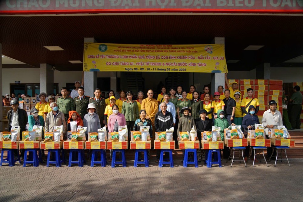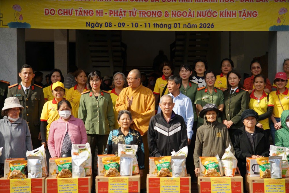 PSO – Trong hai ngày 9 - 10/1/2026, Hội Từ thiện chùa Tường Nguyên (phường Khánh Hội, TP.HCM) tiếp tục hành trình thiện nguyện hướng về miền Trung yêu thương, chung tay hỗ trợ đồng bào khắc phục, tái thiết cuộc sống sau mưa lũ. Dưới sự hướng dẫn của Thượng tọa Thích Minh Phú – Ủy viên Hội đồng Trị sự, Phó ban Thường trực Ban Từ thiện xã hội GHPGVN TP.HCM, đoàn đã trao hơn 1.500 phần quà đến bà con trên địa bàn tỉnh Đắk Lắk.