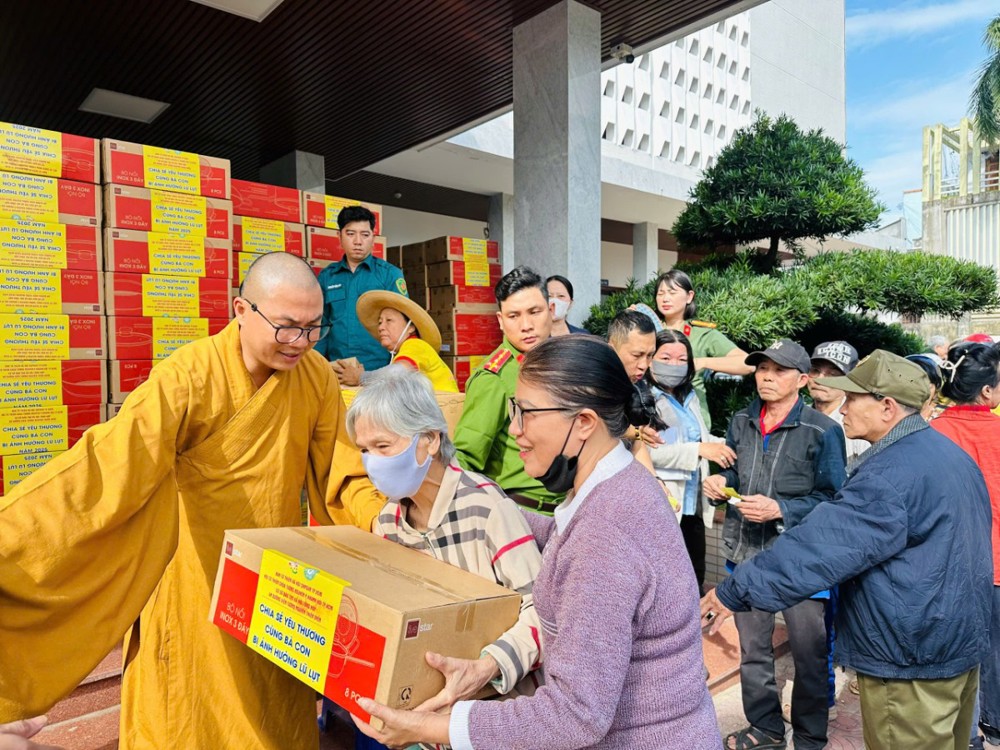 Tại các điểm trao quà, Thượng tọa Thích Minh Phú đã ân cần thăm hỏi, gửi lời chúc sức khỏe và động viên bà con nỗ lực vượt qua khó khăn, chuẩn bị đón một mùa xuân mới an lành. Thượng tọa chia sẻ, tuy giá trị vật chất không lớn nhưng mỗi phần quà là tấm lòng chân thành, sự sẻ chia sâu sắc của đồng bào Phật tử miền Nam gửi đến bà con vùng bị ảnh hưởng bởi thiên tai.