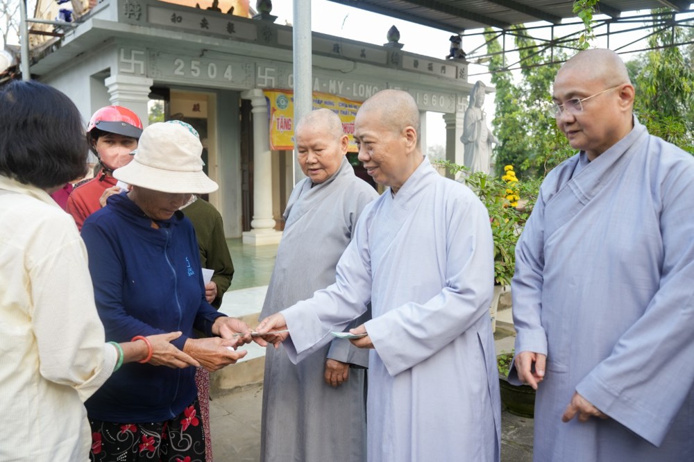 Dịp này, đoàn cũng cúng dường một số tịnh tài, tịnh vật tại các tự viện bị ảnh hưởng bởi bão lũ tại các tỉnh Khánh Hòa, Đắk Lắk và Gia Lai.