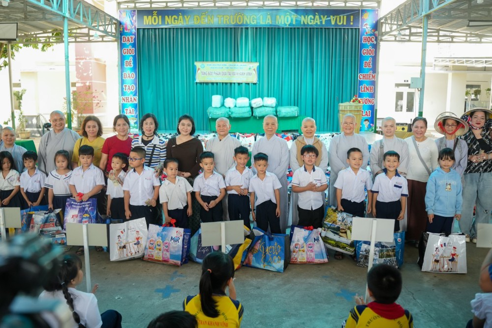 Tại xã Khánh Vĩnh, tỉnh Khánh Hòa, đoàn đã trao 300 phần quà cho các hộ dân có hoàn cảnh khó khăn bị ảnh hưởng bởi bão lũ, mỗi phần trị giá 500.000 đồng gồm tiền mặt và nhu yếu phẩm. Cùng ngày, đoàn tiếp tục trao 300 phần quà cho học sinh Trường Tiểu học Khánh Vĩnh, mỗi phần trị giá 700.000 đồng, gồm tiền mặt và đồ dùng học tập nhằm hỗ trợ các em ổn định việc học tập sau thiên tai.
