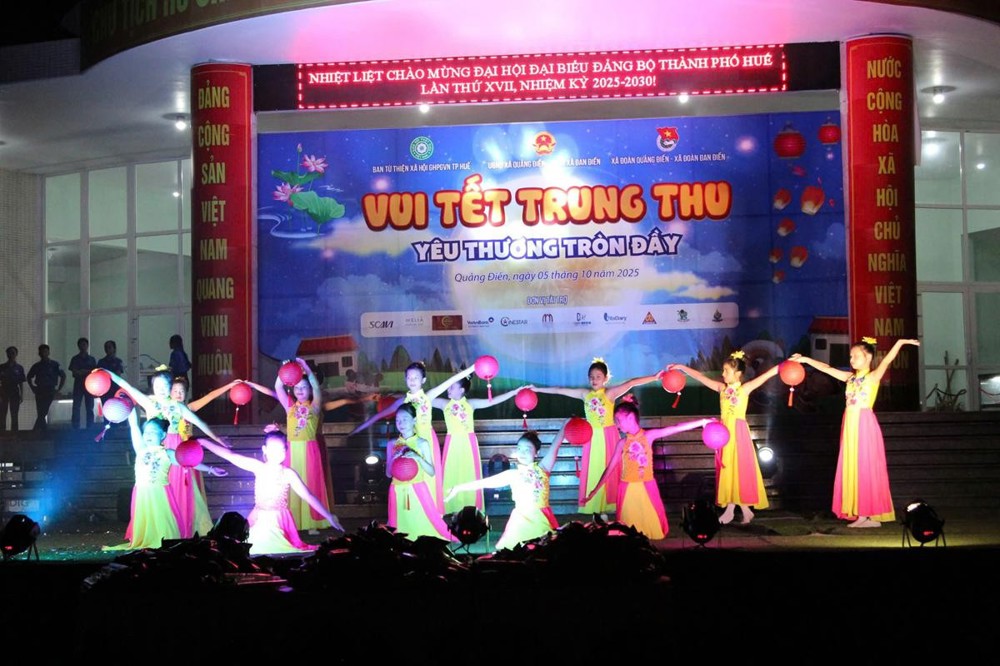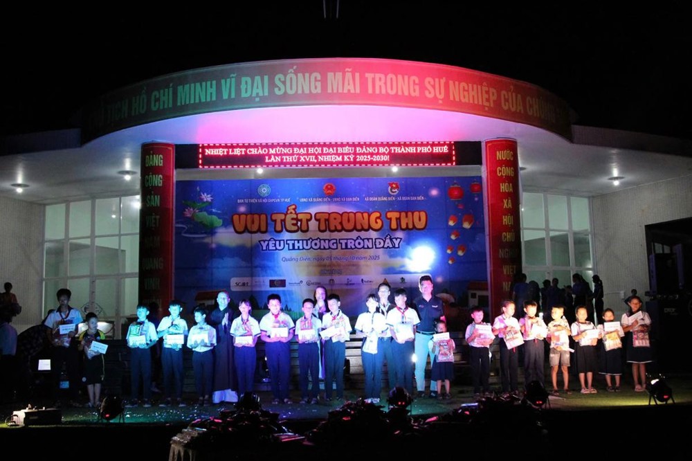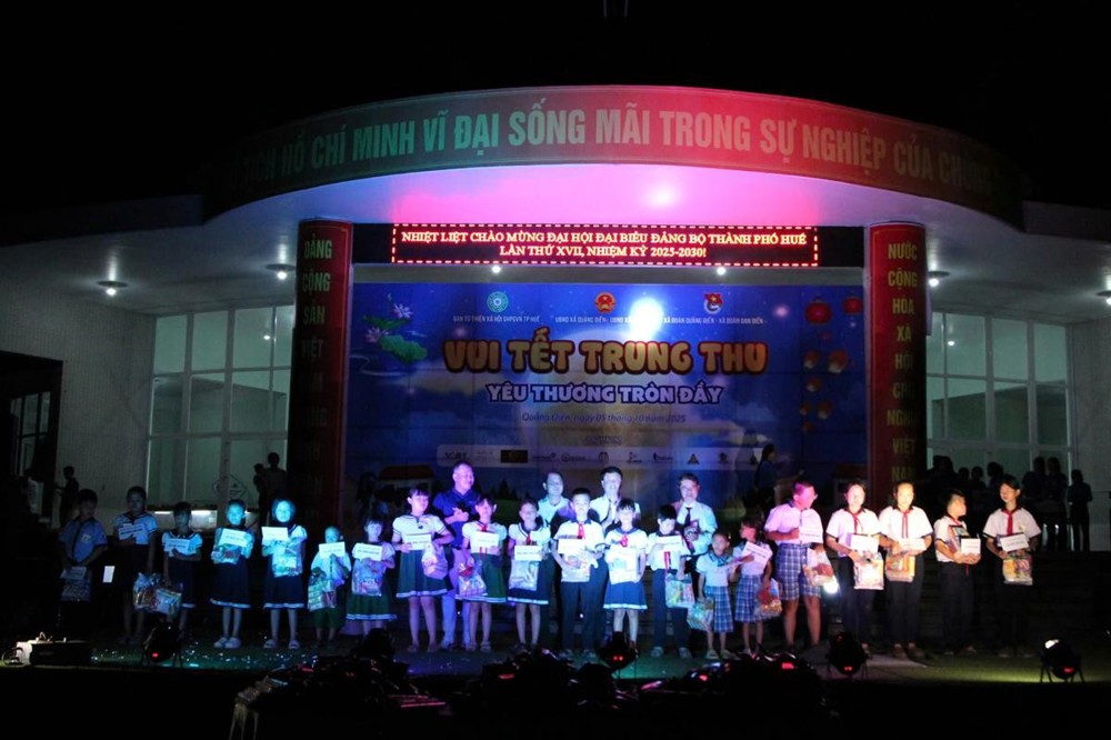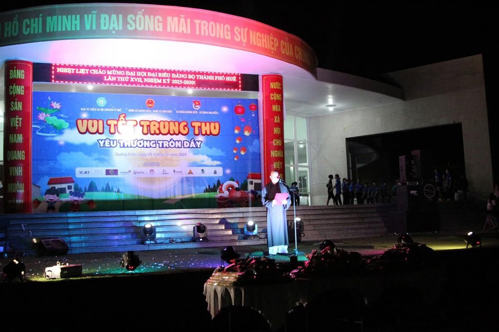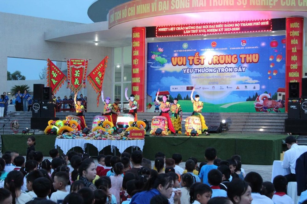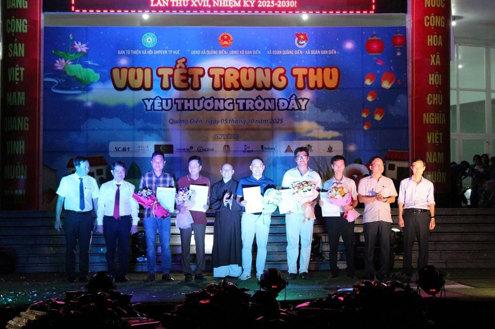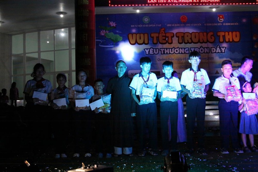 PSO - Chiều tối ngày 05/10/2025, Ban Từ thiện Xã hội GHPGVN thành phố Huế phối hợp cùng UBND, Đoàn Thanh niên xã Quảng Điền, xã Đan Điền (thành phố Huế) tổ chức chương trình “Vui Tết trung thu – Yêu thương tròn đầy”, tặng quà trung thu đến 1000 cháu thiếu nhi trên địa bàn.