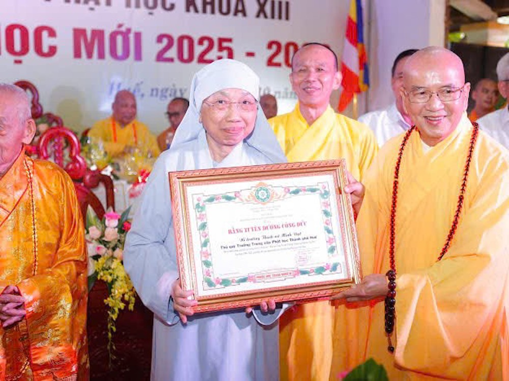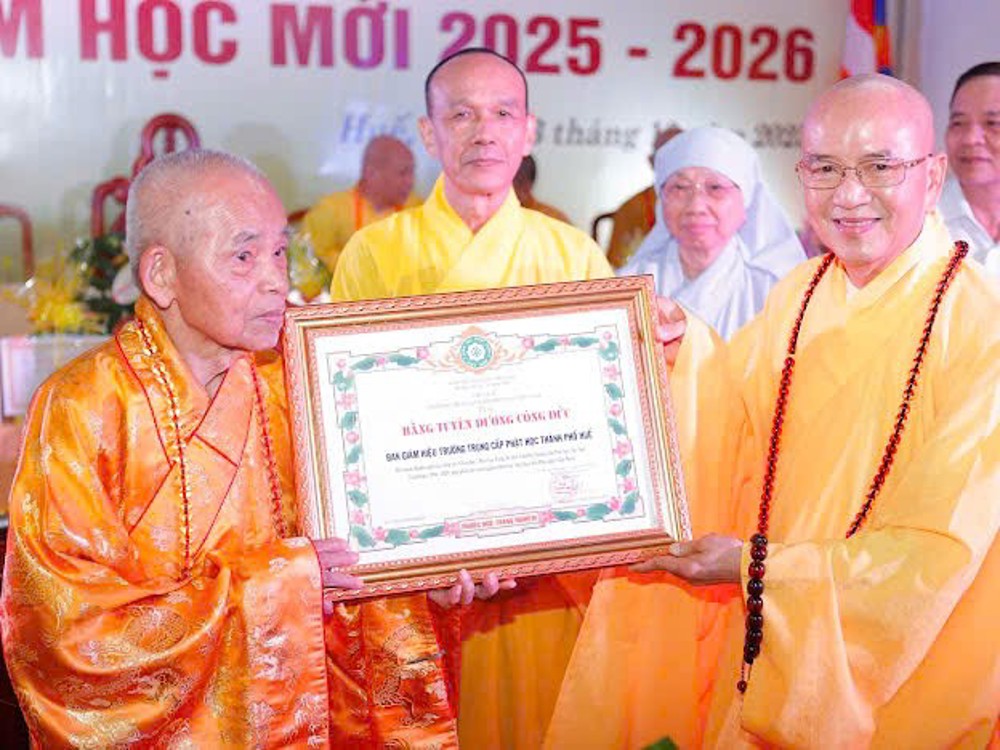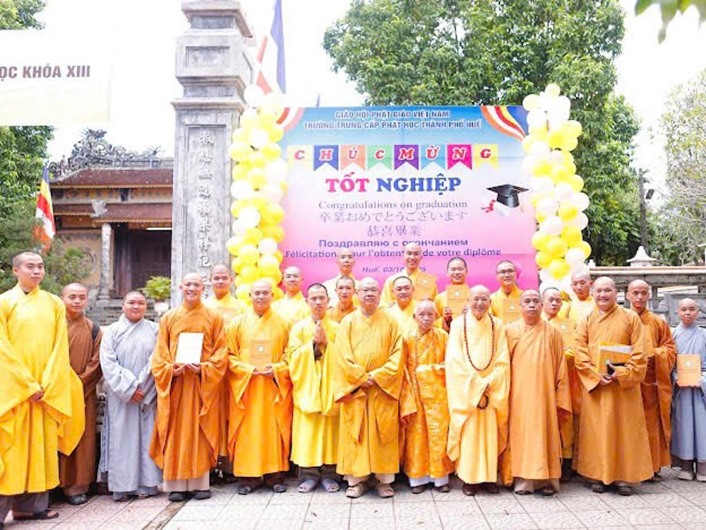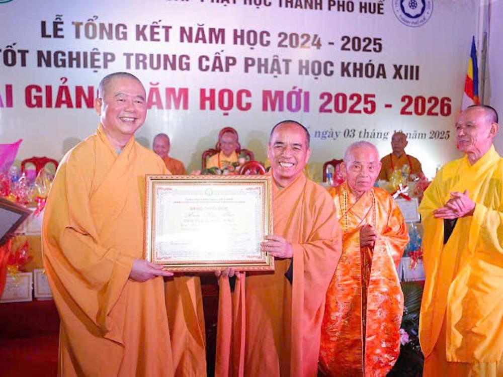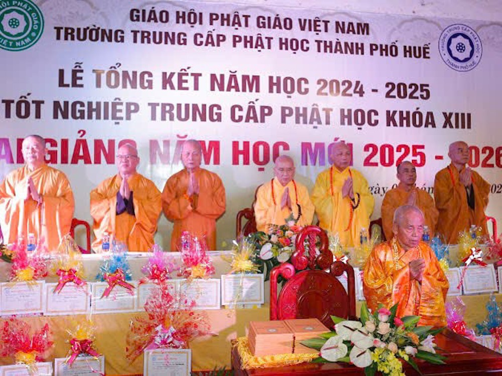 PSO - Sáng ngày 03/10/2025, tại trường Trung cấp Phật học Thành phố Huế (chùa Báo Quốc, TP.Huế), Ban Giám hiệu nhà trường đã tổ chức buổi lễ tổng kết năm học 2024 - 2025, cấp phát văn bằng tốt nghiệp Phật học khoá XIII và khai giảng năm học mới 2025 – 2026 các khoá XIV, XV, XVI, lớp Sơ cấp nội điển Phật học và các lớp 10, 11, 12 khối ngoại điển GDTX cấp THPT.