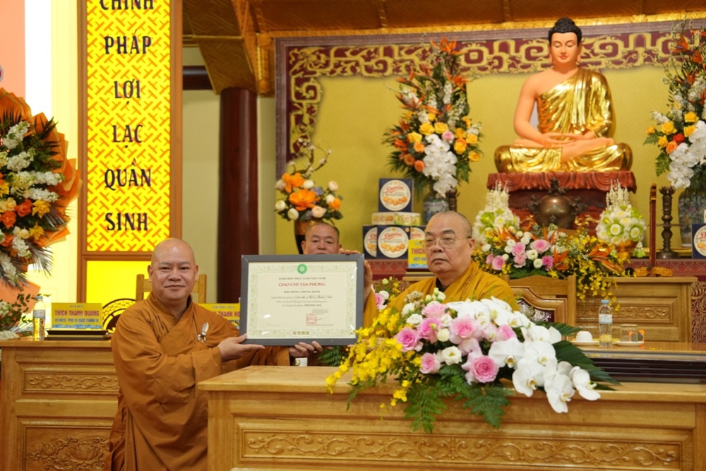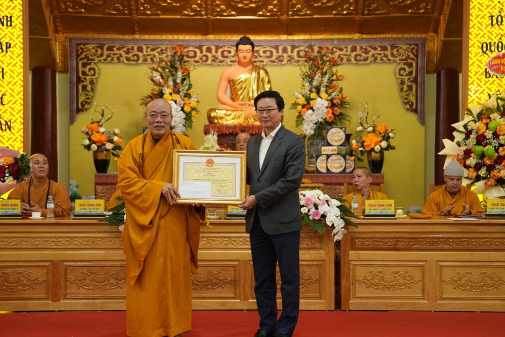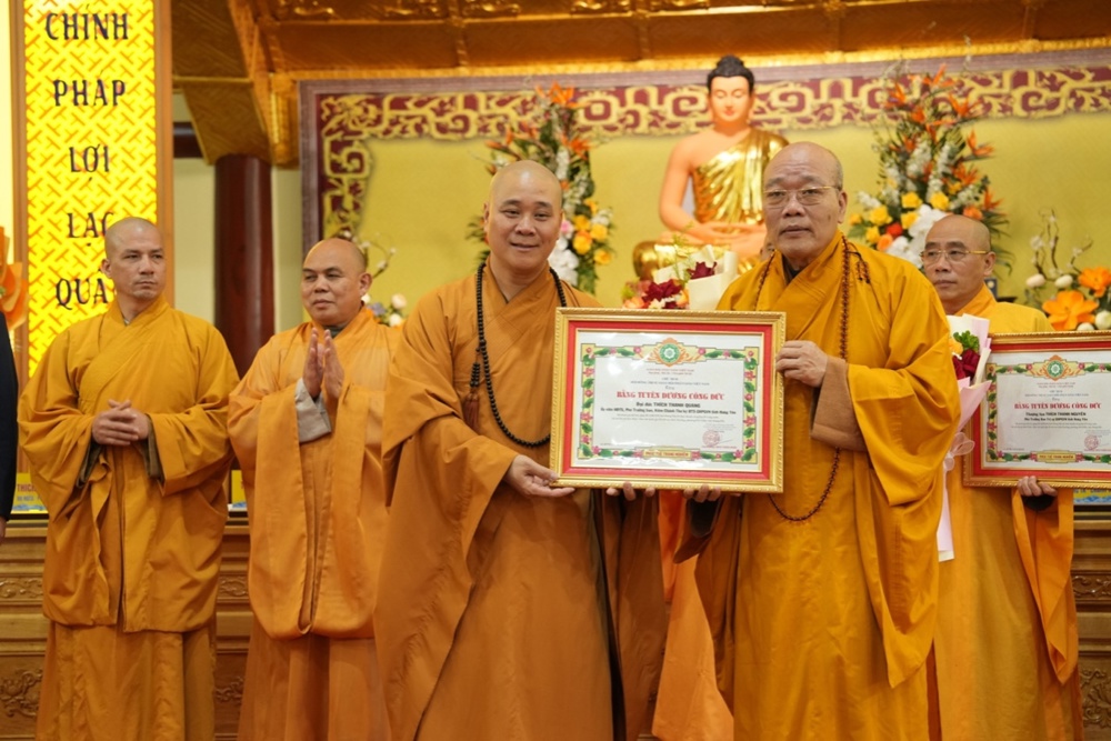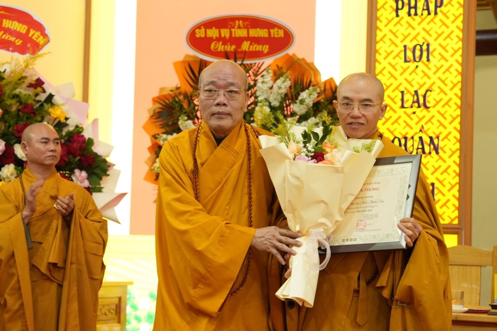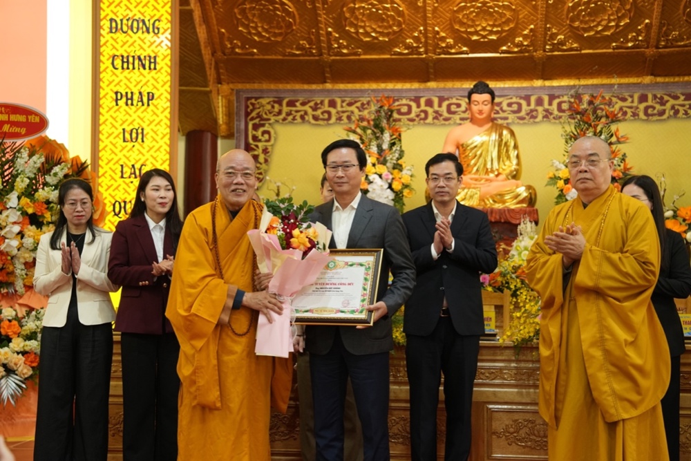 Dịp này, Trung ương GHPGVN và UBND tỉnh Hưng Yên đã trao Bằng khen, Bằng tuyên dương công đức cho các tập thể, cá nhân có thành tích xuất sắc trong công tác Phật sự năm 2025, đặc biệt là những đóng góp tích cực trong việc tổ chức Đại lễ Phật đản và cung nghinh Xá lợi Đức Phật Thích Ca Mâu Ni.