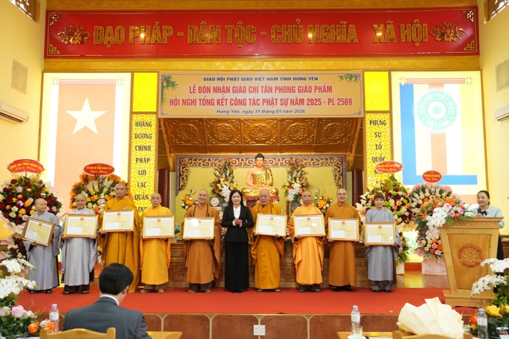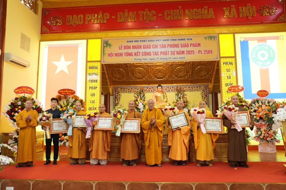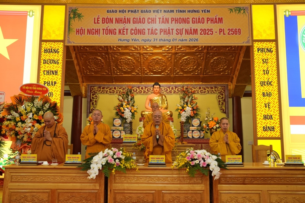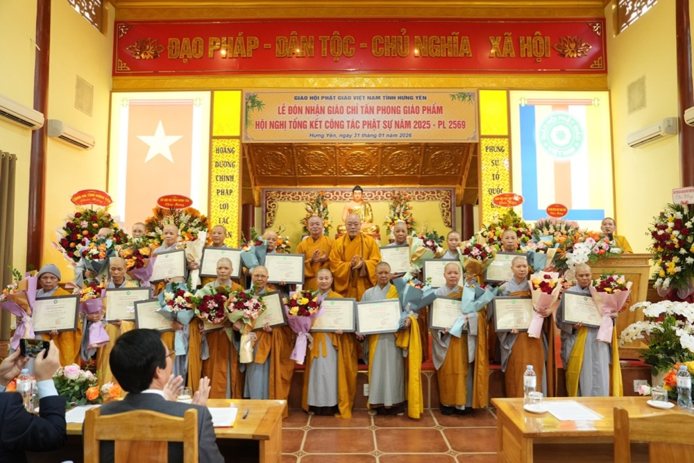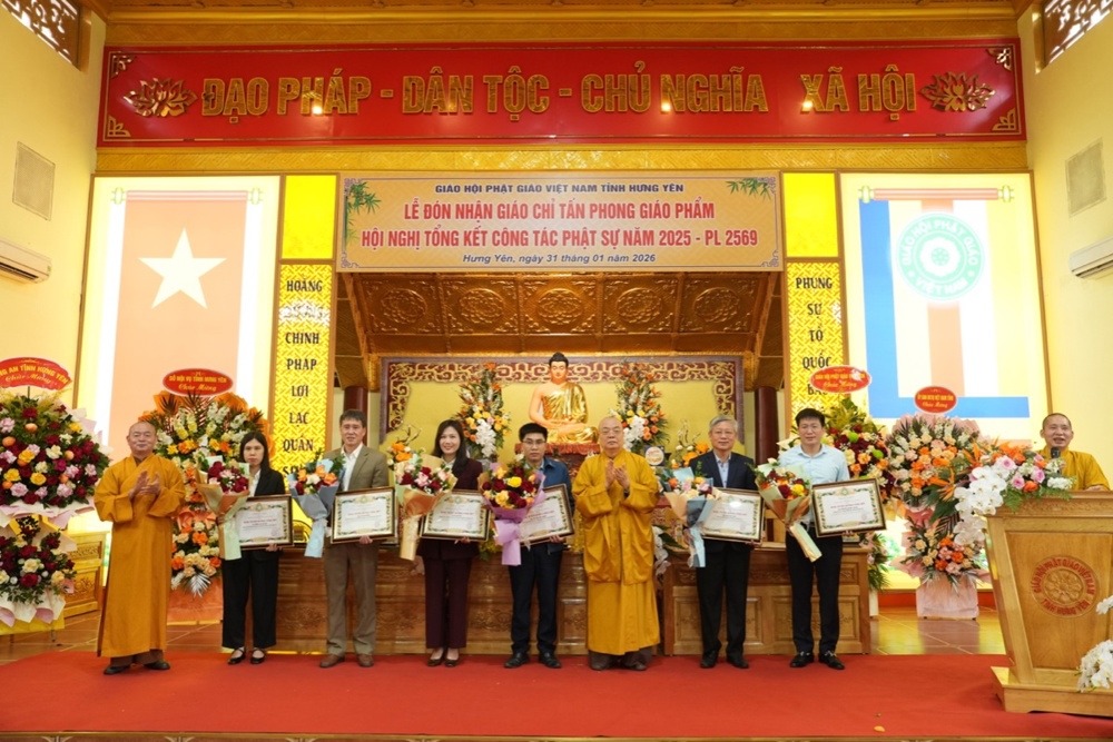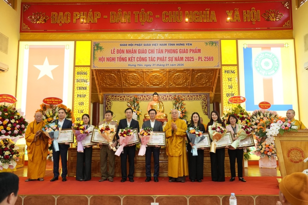 Ngày 31/01/2026 (nhằm ngày 13 tháng Chạp năm Ất Tỵ), tại Trụ sở Giáo hội Phật giáo Việt Nam tỉnh Hưng Yên, Ban Trị sự GHPGVN tỉnh long trọng tổ chức Hội nghị tổng kết công tác Phật sự năm 2025 và triển khai phương hướng hoạt động Phật sự năm 2026. Trong khuôn khổ Hội nghị, Ban Tổ chức đã trao Giáo chỉ tấn phong Giáo phẩm cho chư Tôn đức Tăng Ni đủ điều kiện; đồng thời trao Bằng tuyên dương công đức của Trung ương GHPGVN và Bằng khen của UBND tỉnh Hưng Yên cho các tập thể, cá nhân có nhiều đóng góp tích cực trong công tác Phật sự của tỉnh năm 2025.