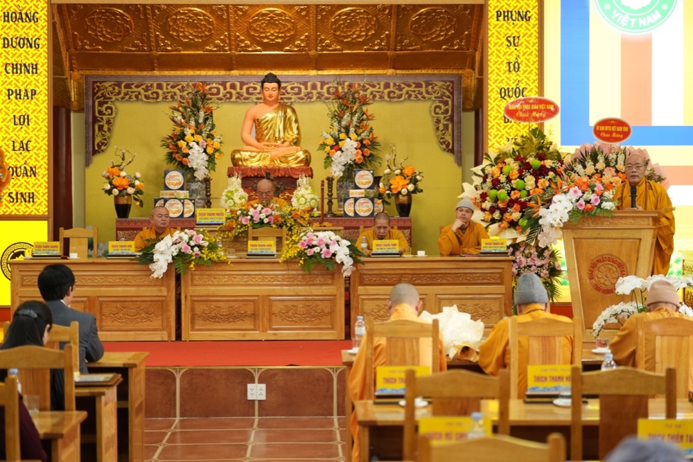Tiếp đó, Thượng tọa Thích Thanh Hòa – Phó Trưởng ban Thường trực Ban Trị sự GHPGVN tỉnh trình bày phương hướng hoạt động Phật sự năm 2026. Thượng tọa nhấn mạnh, năm 2026 có ý nghĩa đặc biệt, gắn với chủ trương hợp nhất đơn vị hành chính cấp tỉnh, đồng thời là giai đoạn chuẩn bị quan trọng hướng tới Đại hội Phật giáo các cấp. Qua đó, kêu gọi Tăng Ni toàn tỉnh tiếp tục phát huy tinh thần đoàn kết, hòa hợp, ổn định tổ chức Giáo hội, chủ động thích ứng với tình hình mới, góp phần xây dựng Giáo hội ngày càng vững mạnh.