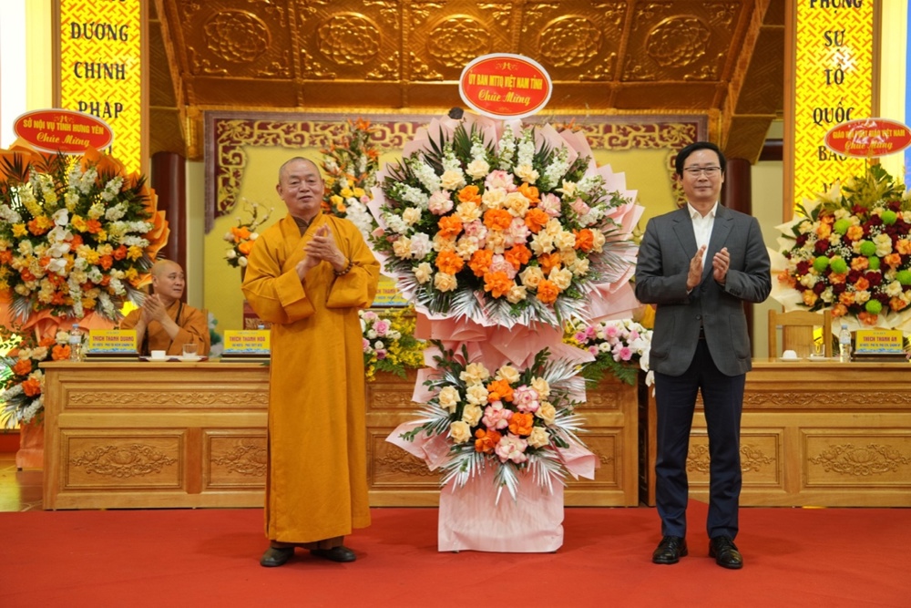 Phát biểu tại Hội nghị, ông Nguyễn Bật Khánh ghi nhận và đánh giá cao những đóng góp tích cực của GHPGVN tỉnh Hưng Yên trong công tác an sinh xã hội, từ thiện nhân đạo và xây dựng khối đại đoàn kết toàn dân tộc. Ông bày tỏ mong muốn Giáo hội tiếp tục phát huy truyền thống đồng hành cùng dân tộc, đóng góp tích cực vào sự phát triển của tỉnh trong giai đoạn mới, đáp ứng yêu cầu của “kỷ nguyên mới”.
