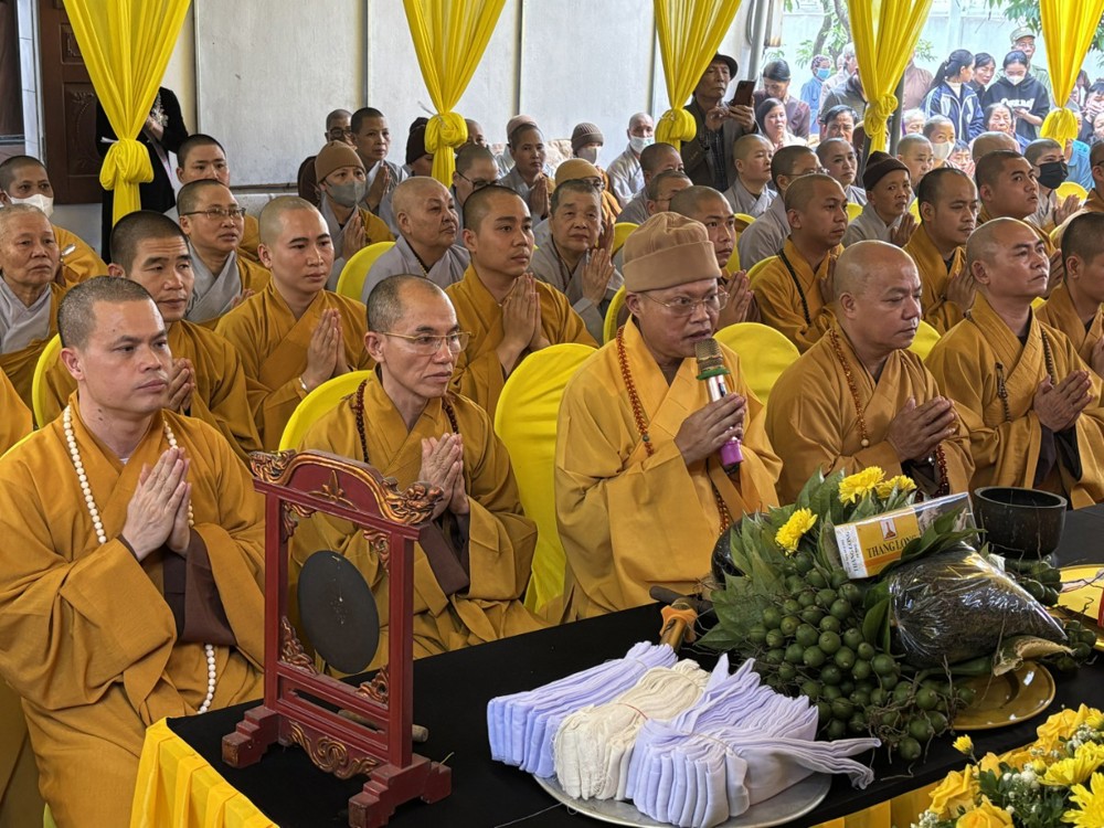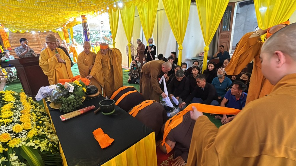 Tiếp đó, Thượng tọa Thích Thanh Vượng đã cử hành nghi thức phát tang – thành phục cho toàn thể môn đồ, pháp quyến, hiếu quyến và nhân dân Phật tử.