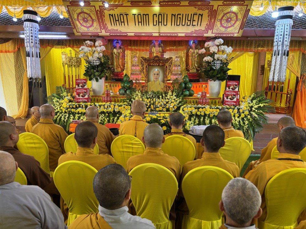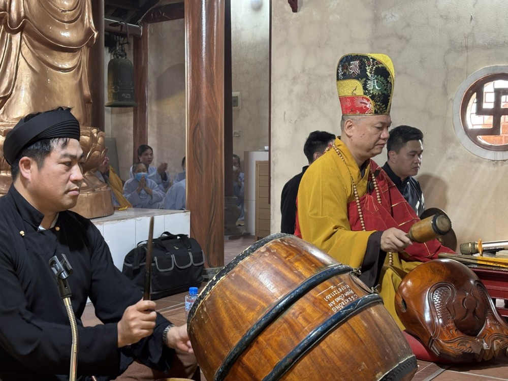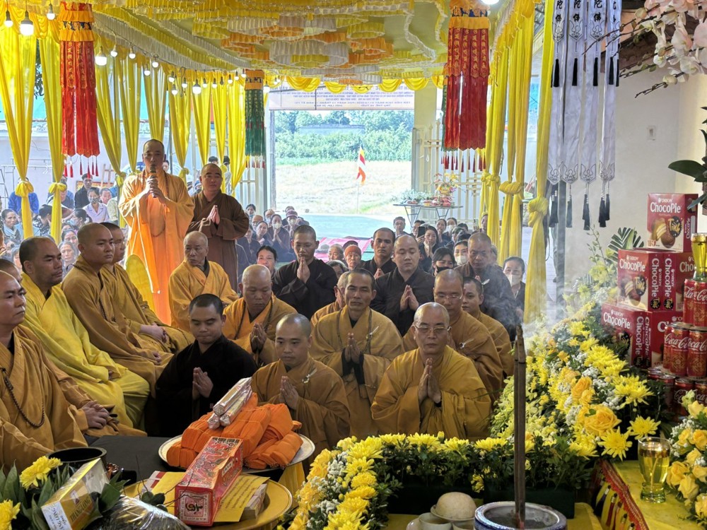 Trước đó, môn đồ pháp quyến – hiếu quyến đã cung thỉnh Thượng tọa Thích Thanh Nghĩa quang lâm chính điện cử hành nghi thức thỉnh Phật và khai kinh.