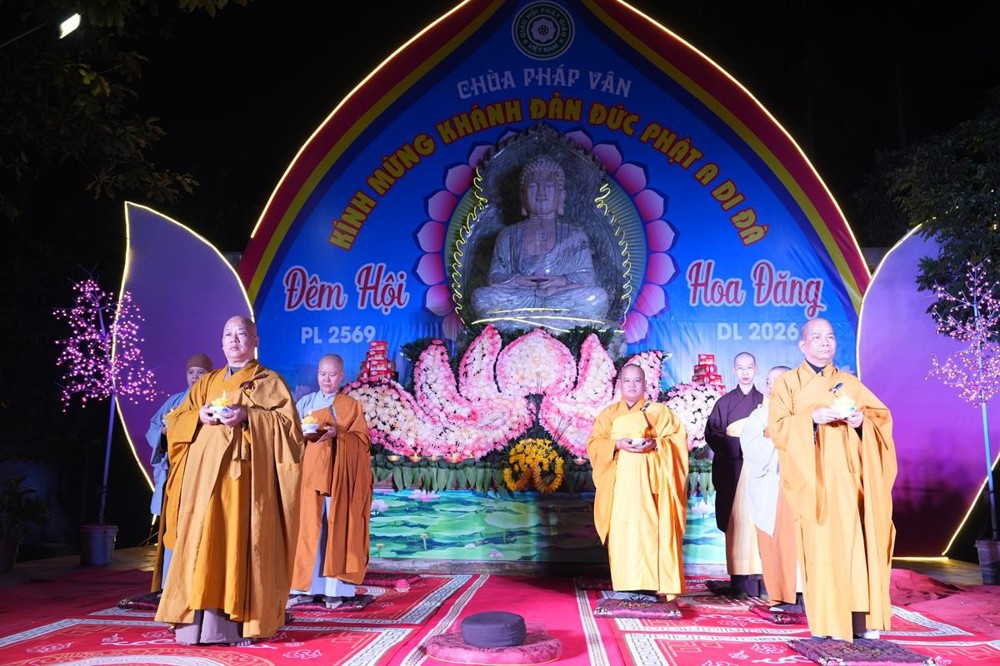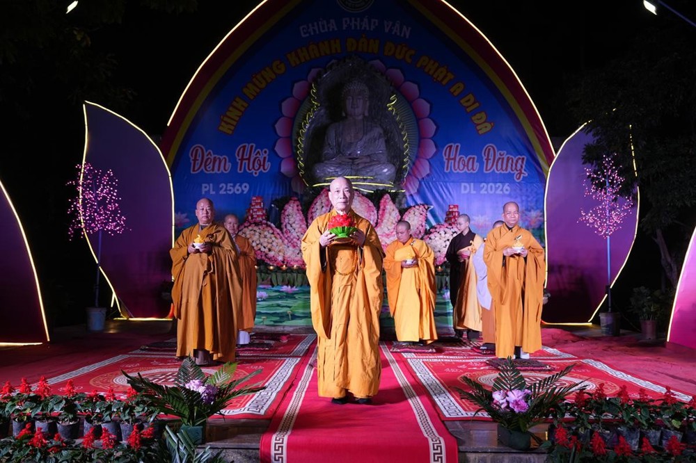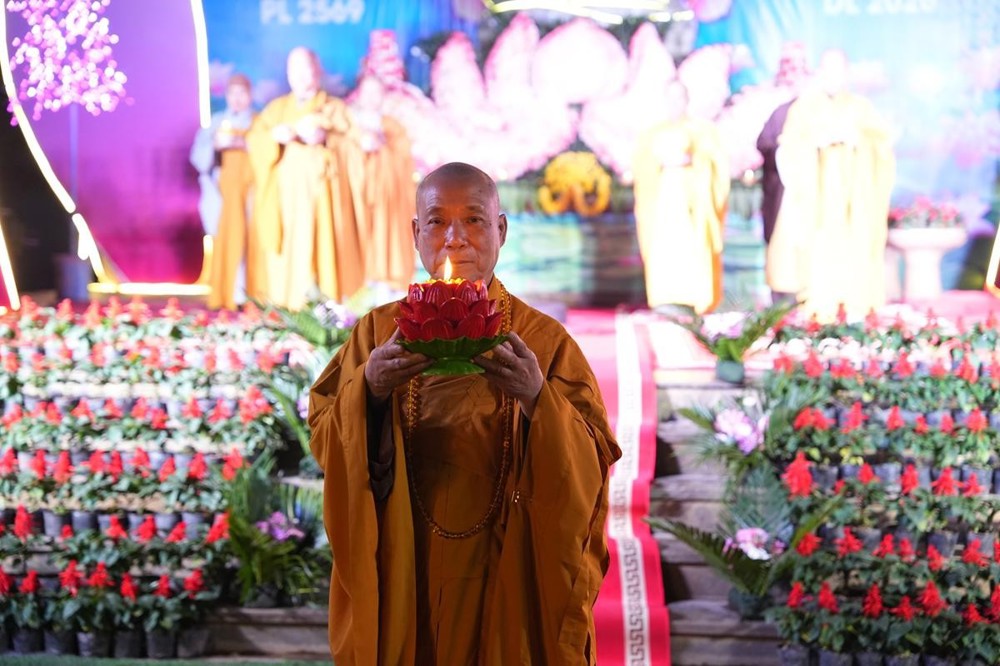 Khép lại lời đạo từ, Hòa thượng sách tấn đại chúng “Nguyện cho ánh sáng hoa đăng đêm nay không chỉ lung linh nơi pháp hội, mà còn được thắp sáng mãi trong tâm mỗi người con Phật, để trên từng bước đi của đời sống, chúng ta luôn nhớ về lý tưởng giác ngộ, về hạnh nguyện vãng sinh, và về con đường an lạc mà chư Phật, chư Tổ đã mở ra cho tất cả chúng sinh”.