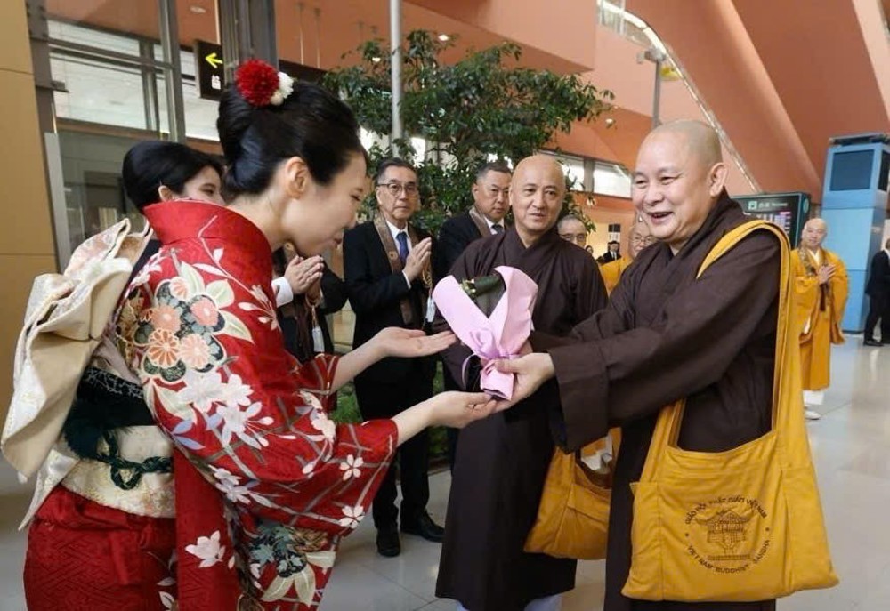 Sau khi đáp xuống Sân bay Quốc tế Kansai (KIX) vào sáng ngày 6/4/2026, phái đoàn Việt Nam đã được Ban Tổ chức phía Nhật Bản đón tiếp trọng thể và thân tình. Sau đó, phái đoàn đã đến tham quan, đảnh lễ Tam bảo tại Trụ sở Hội nghị Thượng đỉnh Phật giáo (The Buddhist Summit Headquarters), thành phố Kobe.