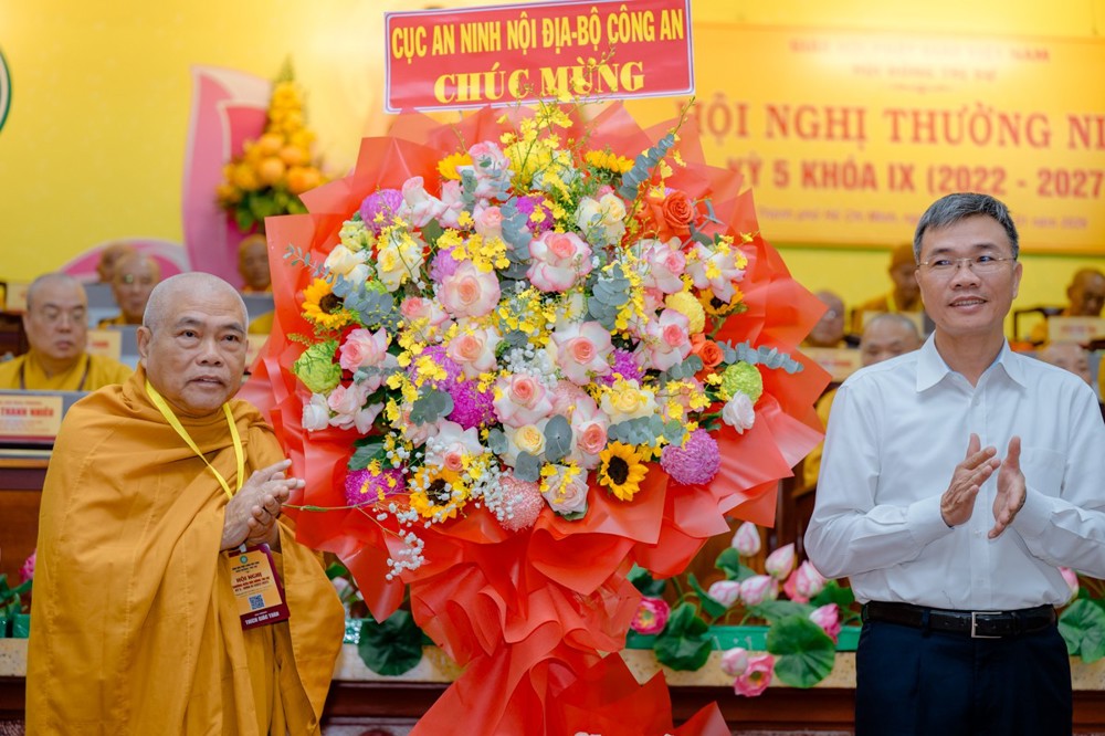 Qua đó, Thứ trưởng cũng ghi nhận và tri ân những đóng góp to lớn của Giáo hội cùng chư Tăng Ni, Phật tử cả nước trong việc góp phần ổn định xã hội, đồng hành cùng dân tộc, chung tay xây dựng đất nước ngày càng phát triển, thịnh vượng. Đồng thời cho biết, Đảng, Nhà nước và Chính phủ luôn quan tâm đến công tác tôn giáo, hết lòng đồng hành, hỗ trợ GHPGVN thực hiện tốt phương châm phụng đạo, yêu nước.