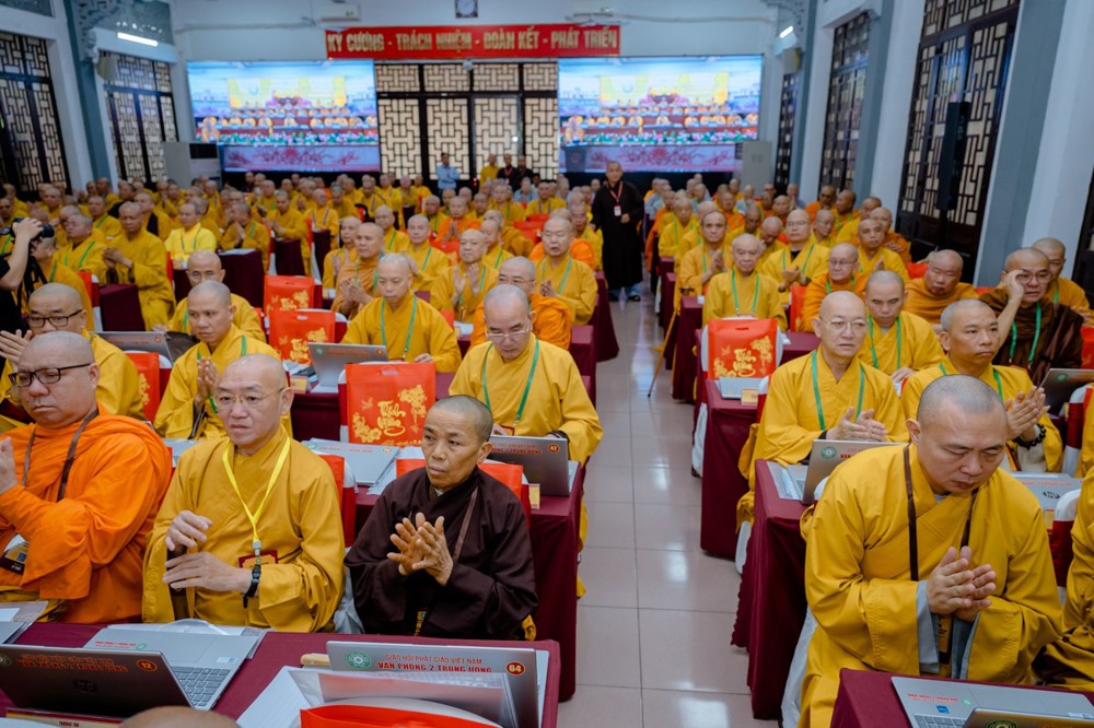 Trưởng lão Hòa thượng Chủ tịch cũng điểm lại những dấu mốc quan trọng trong năm 2025 – năm có ý nghĩa đặc biệt đối với đất nước và Giáo hội – với các sự kiện lớn như: Kỷ niệm 50 năm Ngày Giải phóng miền Nam, thống nhất đất nước; 80 năm Quốc khánh nước CHXHCN Việt Nam; đặc biệt là việc tổ chức thành công Đại lễ Vesak Liên Hợp Quốc 2025, được Chính phủ và cộng đồng quốc tế đánh giá cao, góp phần nâng cao vị thế và hình ảnh Việt Nam trên trường quốc tế.