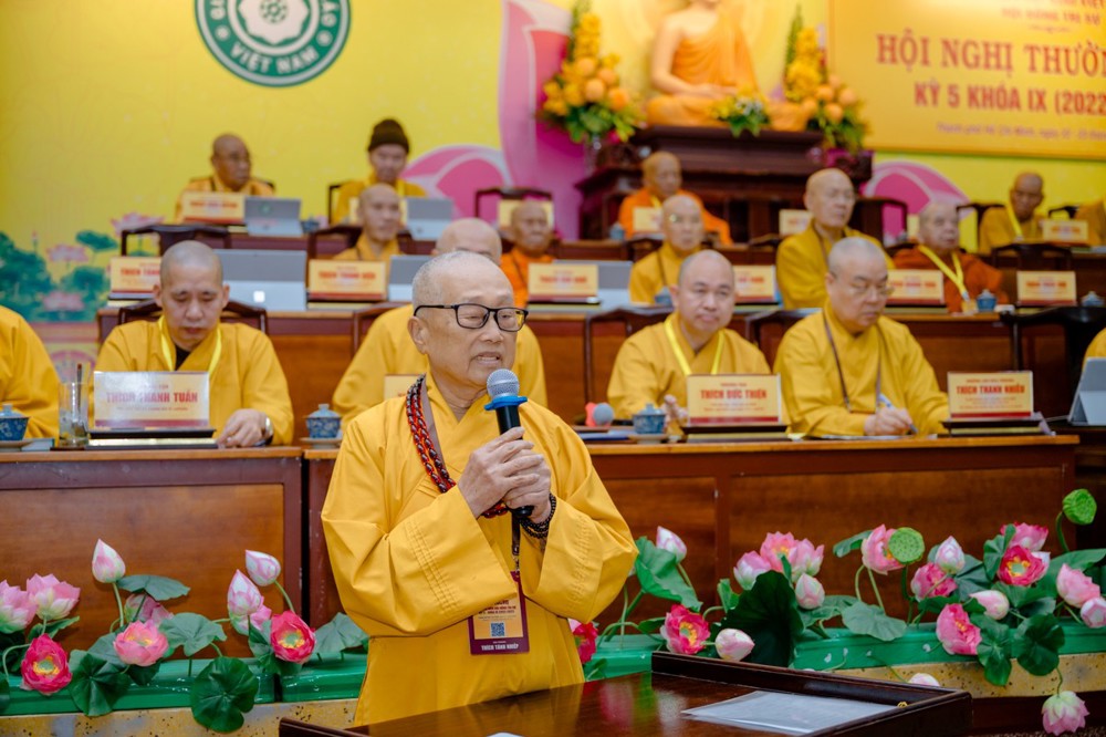 Trên tinh thần Kỷ cương, Trách nhiệm, Đoàn kết, Phát triển, thay mặt Trung ương Giáo hội, Trưởng lão Hòa thượng kỳ vọng chư Tôn đức lãnh đạo Giáo hội, các Ban, Viện Trung ương, Ban Trị sự các địa phương phát biểu ý kiến về các Phật sự quan trọng của Giáo hội sẽ được tiến hành trong thời gian tới.