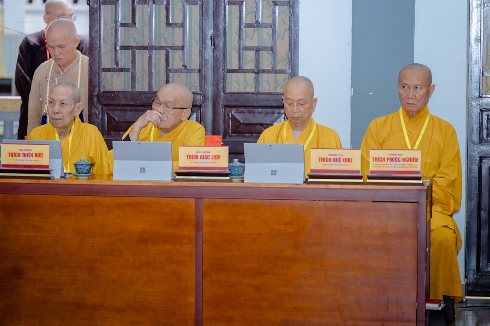 Chủ trì Hội nghị là Trưởng lão Hòa thượng Thích Thiện Nhơn – Phó Pháp chủ HĐCM, Chủ tịch HĐTS. Chủ tọa đoàn còn có Trưởng lão Hòa thượng Thích Thiện Pháp và Hòa thượng Thích Thanh Nhiễu – đồng Ủy viên Thường trực HĐCM, Phó Chủ tịch Thường trực HĐTS; cùng chư Tôn đức Phó Chủ tịch HĐTS.
