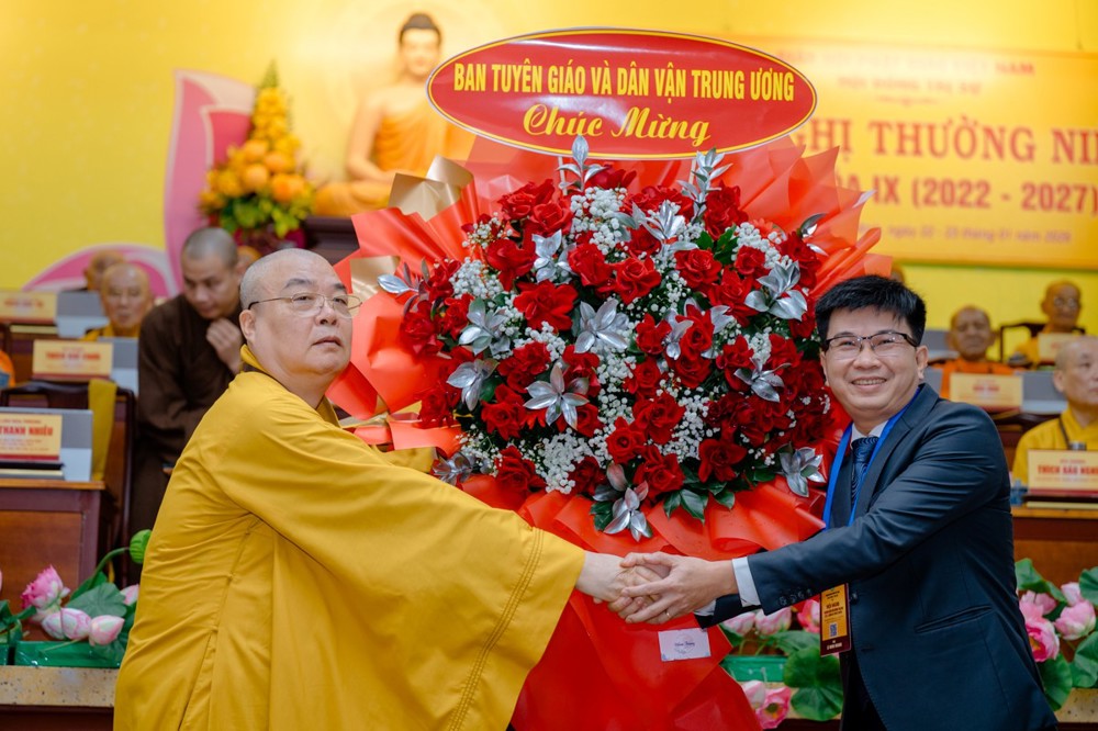 Phát biểu tại Hội nghị, Thứ trưởng Bộ Dân tộc và Tôn giáo Nguyễn Hải Trung chúc mừng những thành tựu Phật sự nổi bật của Giáo hội trong năm qua, đặc biệt là thành công của Đại lễ Vesak Liên Hợp Quốc 2025 – sự kiện được Chính phủ đánh giá rất cao và ghi nhận là một trong những thành tựu chung của đất nước.