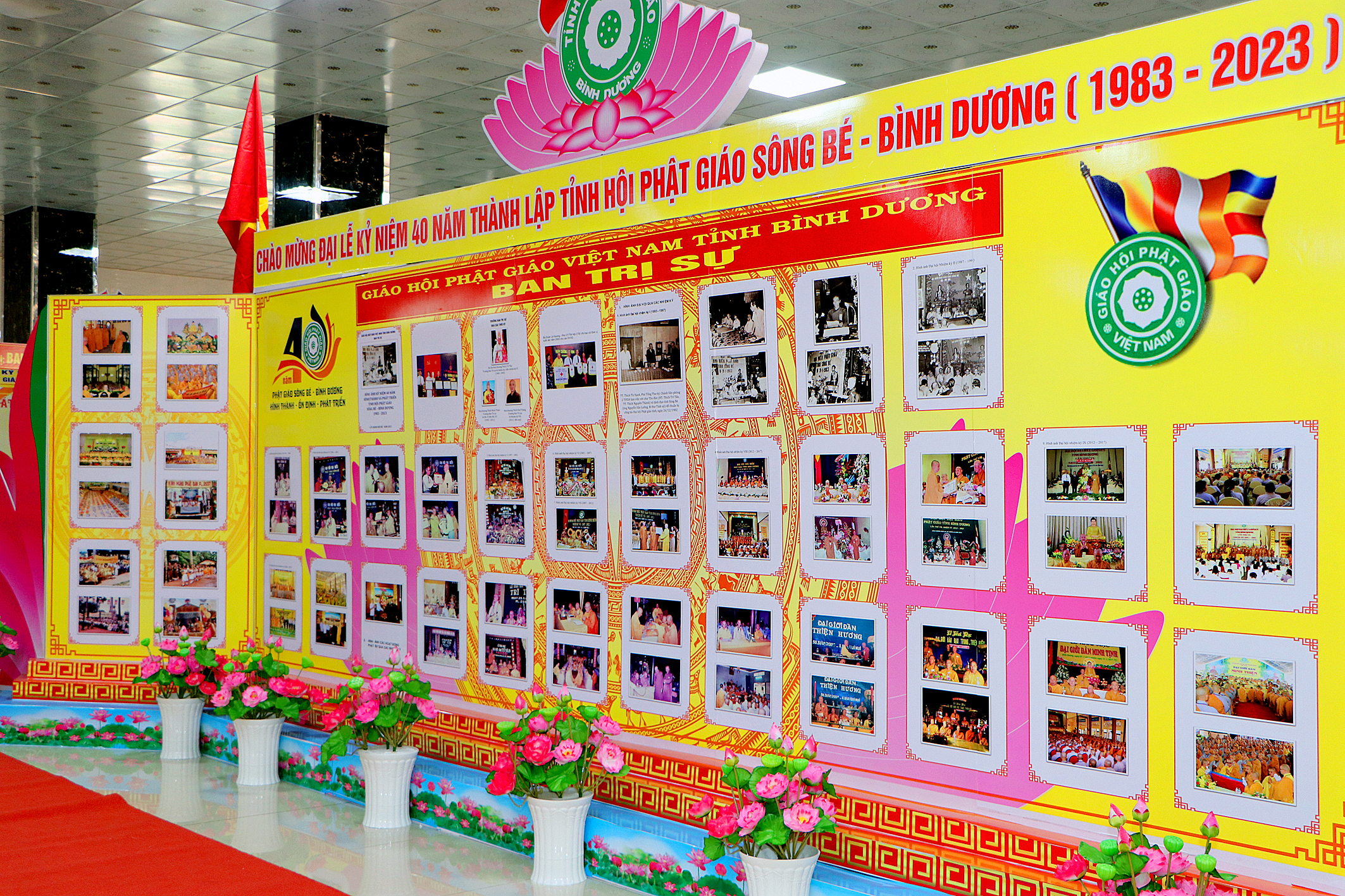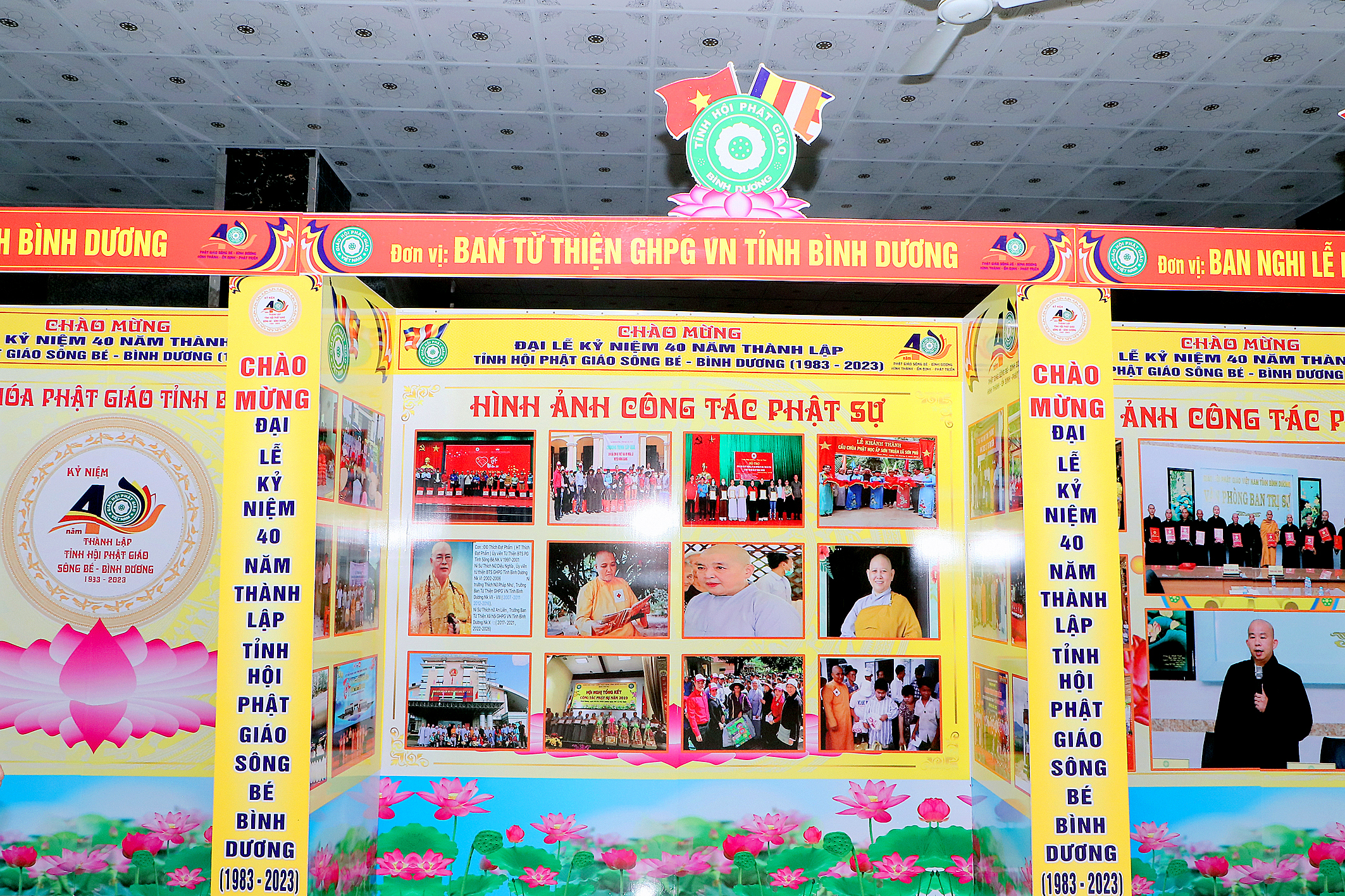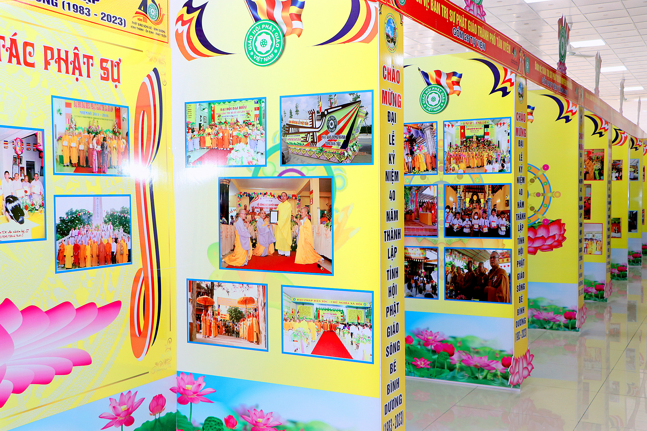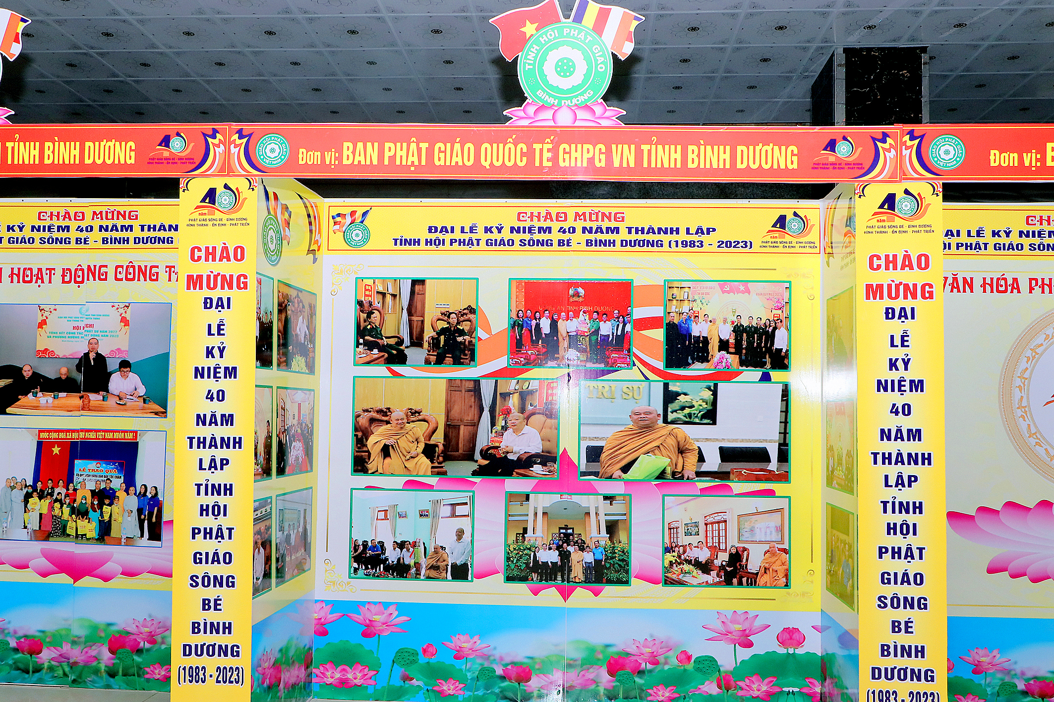 Trước đó cùng ngày, tại Hội trường Trung tâm Văn hóa tượng Phật Niết bàn đã long trọng diễn ra lễ Khai mạc Triển lãm các hoạt động, sự kiện của Phật giáo Sông Bé – Bình Dương trong 40 năm qua, nhằm làm rõ quá trình hình thành, phát triển, những đóng góp của Phật giáo Sông Bé – Bình Dương đối với đạo pháp và dân tộc nói chung, quê hương Sông Bé - Bình Dương nói riêng. Đồng thời, các báo cáo cũng nêu ra những bài học, những định hướng cho sự phát triển của thời kỳ hiện đại. Qua đây, sẽ là cơ hội để chúng ta cùng thảo luận để đưa ra những minh chứng mang tính khoa học của lịch sử và nhiều vấn đề cần phải nhìn nhận, nhằm để tôn vinh và phát huy những giá trị truyền thống cao đẹp trong suốt thời kỳ.